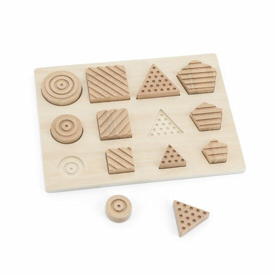 Encaixe sensorial de 12 peças, feito em madeira natural.