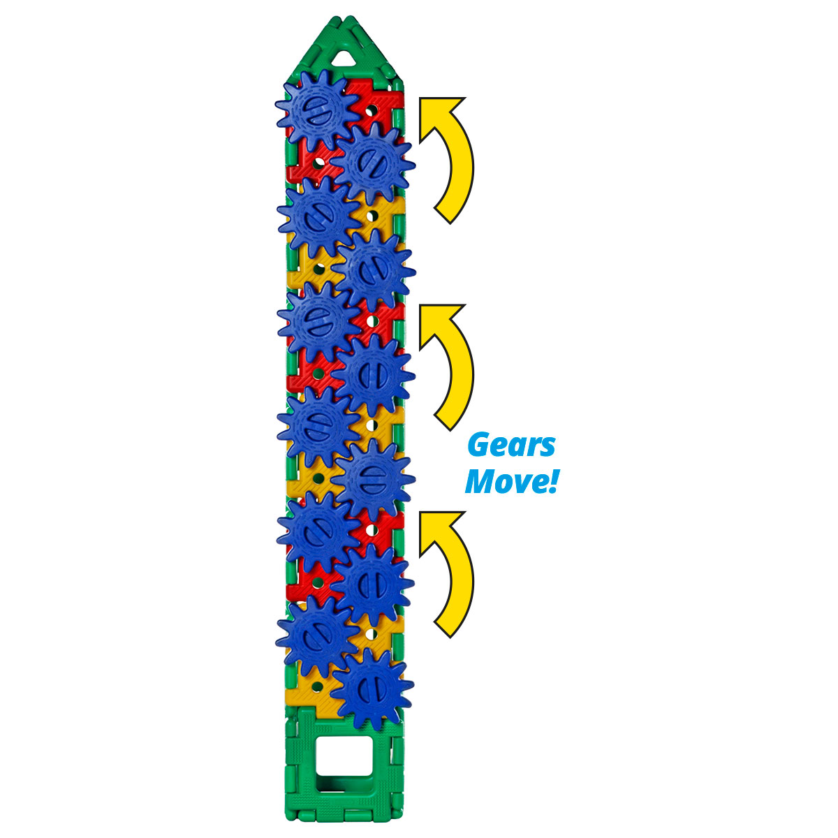 Uma vez conectadas, basta girar uma engrenagem e ver o restante delas girar! Um item indispensável para todos os ambientes de primeira infância e necessidades especiais.