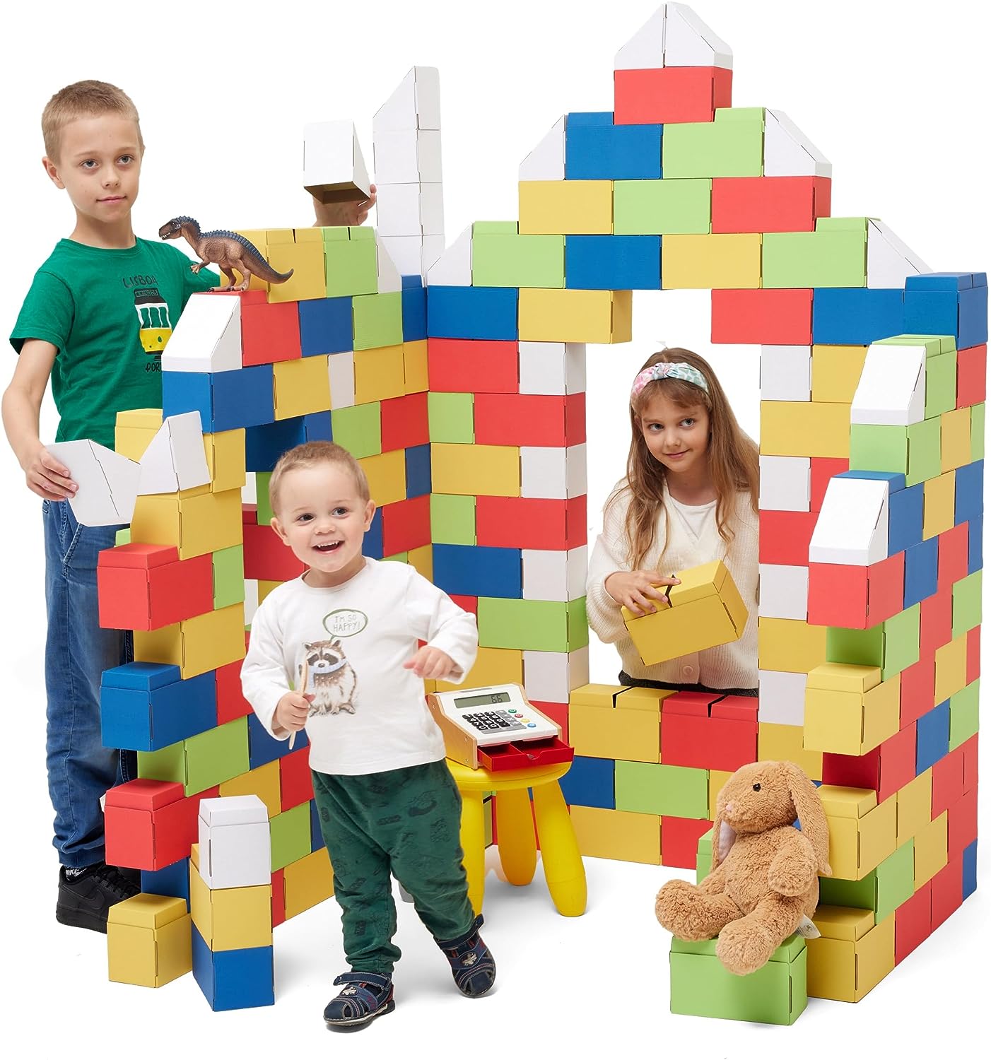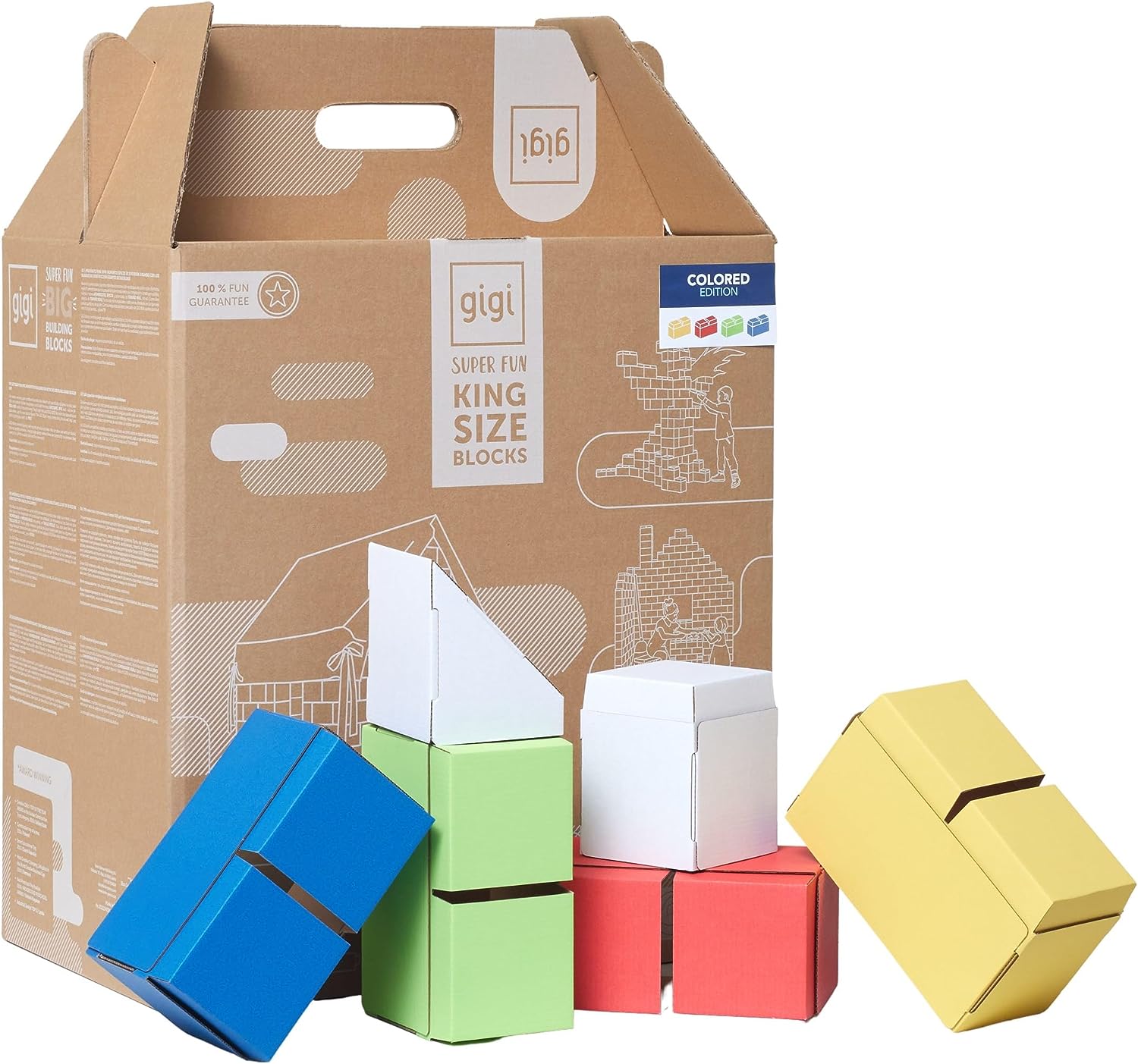 Blocos de construção gigantes de papelão, conjuntos de construção 200 peças XXL coloridos.