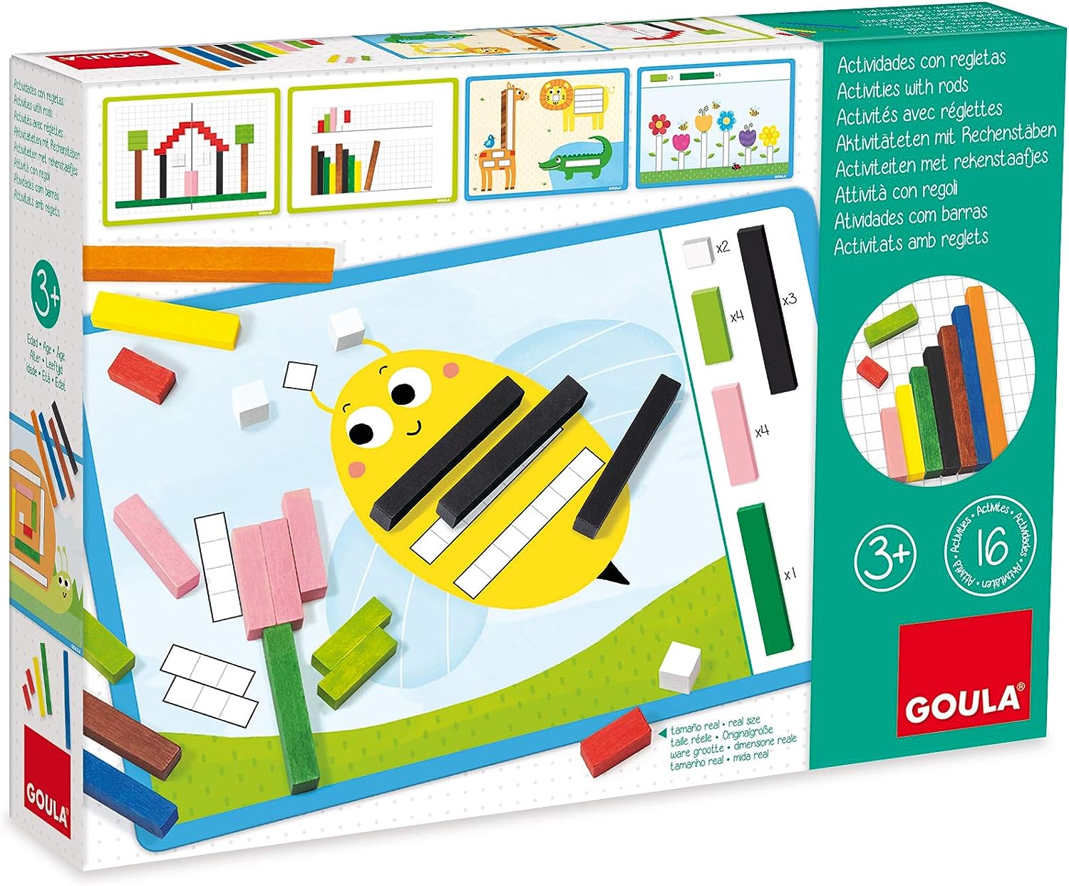 Home Matemática Barras Cuisenaire Atividades Barras Cuisenaire Atividades 16,90 € Desconto de %. Comprar Contactar Adicionar à wishlist Completa 16 atividades com as barras coloridas! Algumas atividades são mais educativas e outras mais recreativas. As mais educativas têm o perfil da cartela em verde e as mais recreativas em azul. Compreensão do conceito e decomposição do número e operações matemáticas básicas. Recomendado a partir dos 3 anos. Dimensões: 30.2 x 22.3 x 5.3 cm Marca Goula Tags Matemática Características Partilhar