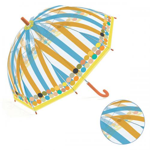 Um guarda-chuva chique e prático com ilustrações gráficas. O seu desenho transparente permite que a criança veja para onde vai e a sua abertura manual com sistema de protecção permite abrir e fechar sem prender os dedos. Um acessório colorido, ideal para alegrar os passeios na chuva!