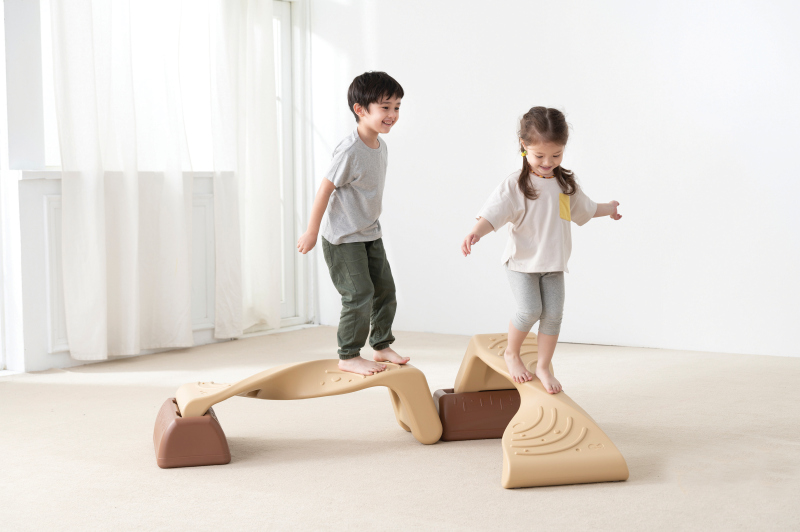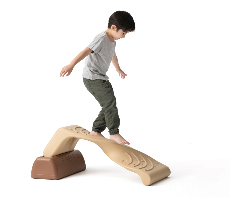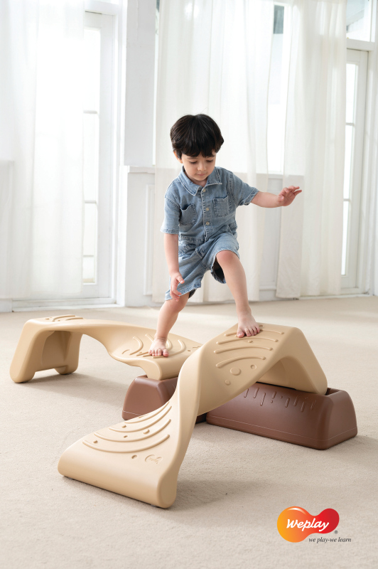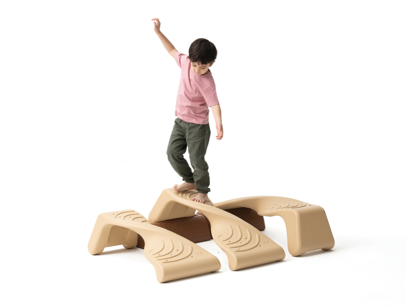 Caminhar no Caminho de Equilíbrio em Hélice com três alturas diferentes ajuda a fortalecer o controle do corpo inferior das crianças e suas habilidades de equilíbrio.