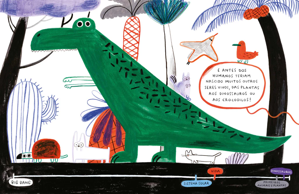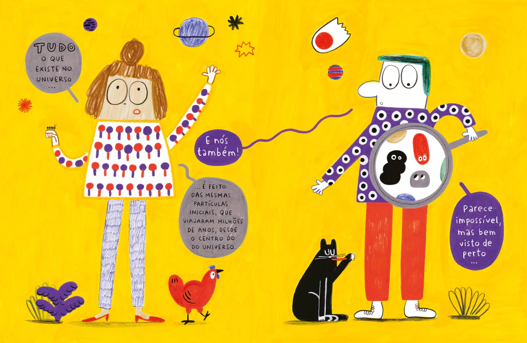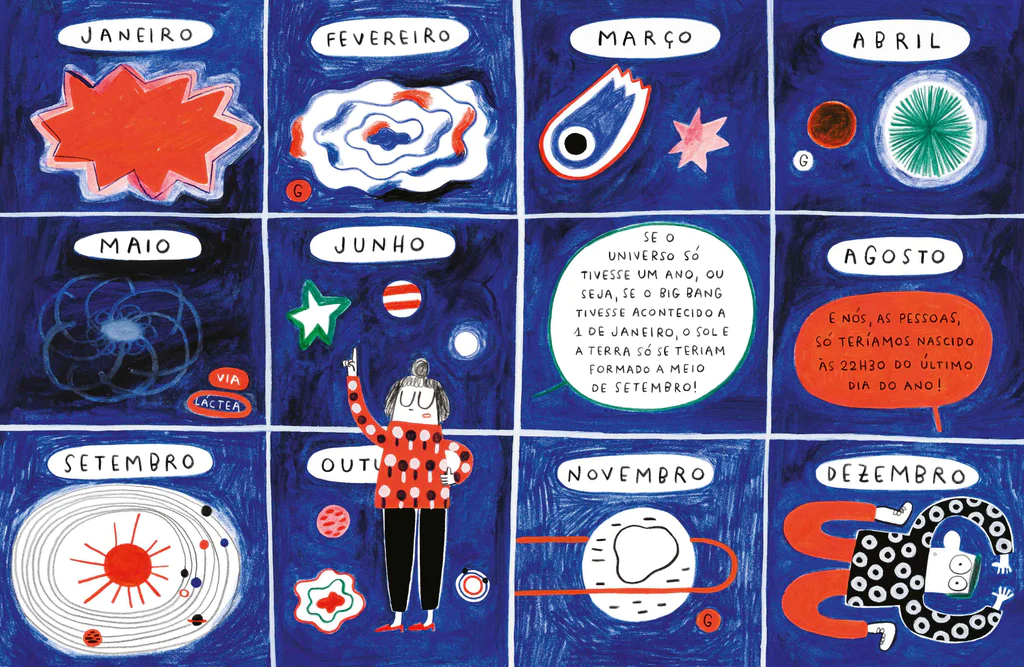 Uma longa viagem entre partículas, dinossauros e planetas, que nos recorda que somos todos feitos da mesma matéria: pó de estrelas!