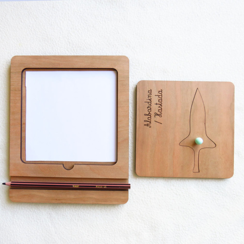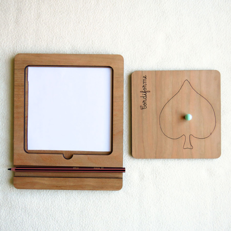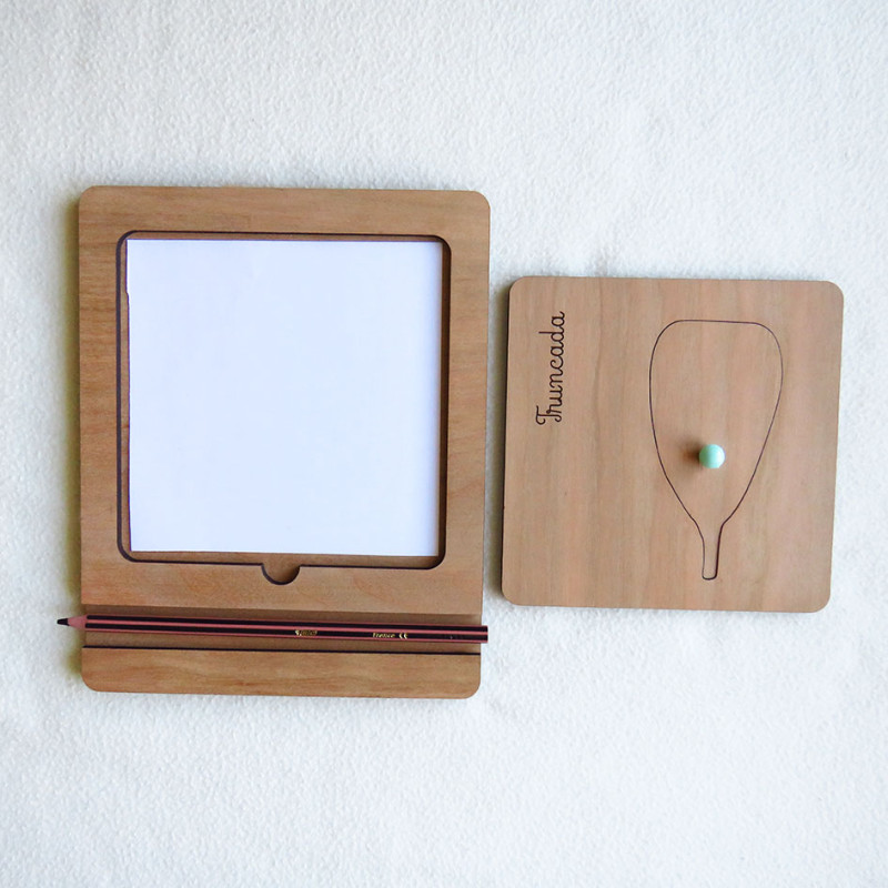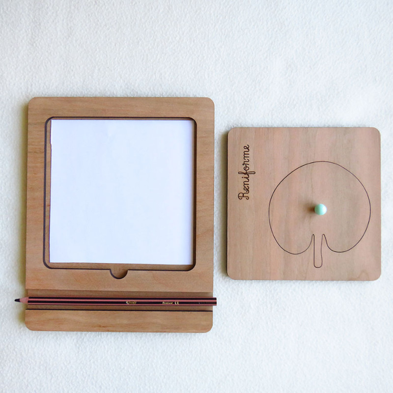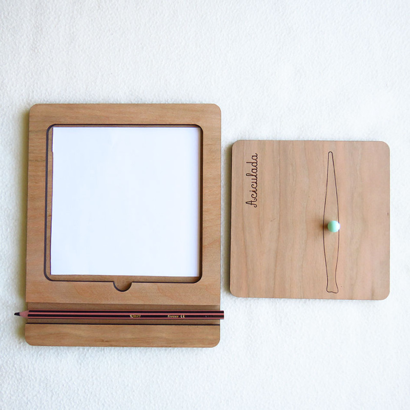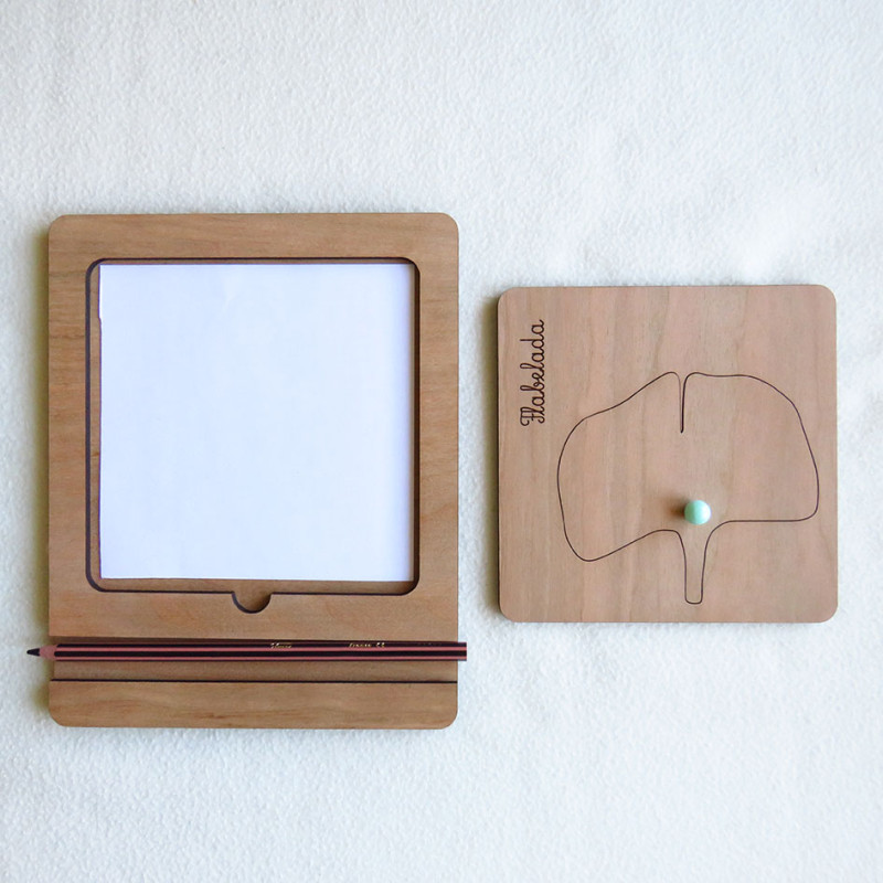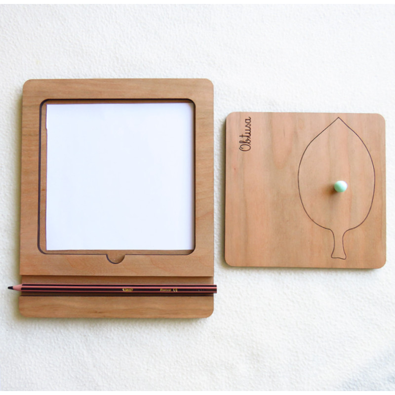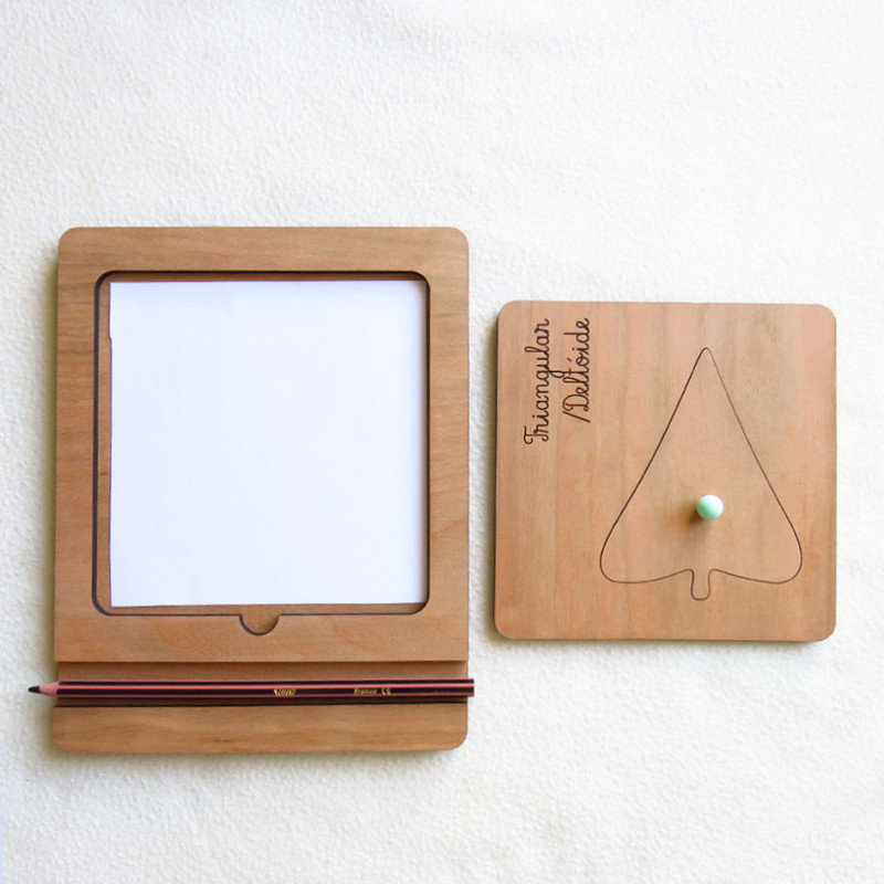 Cada placa é acompanhado de uma base, onde deverá colocar uma folha, para que a criança possa traçar a forma, podendo assim usar o stencil (traçado interno) ou a folha sozinha (traçado externo).