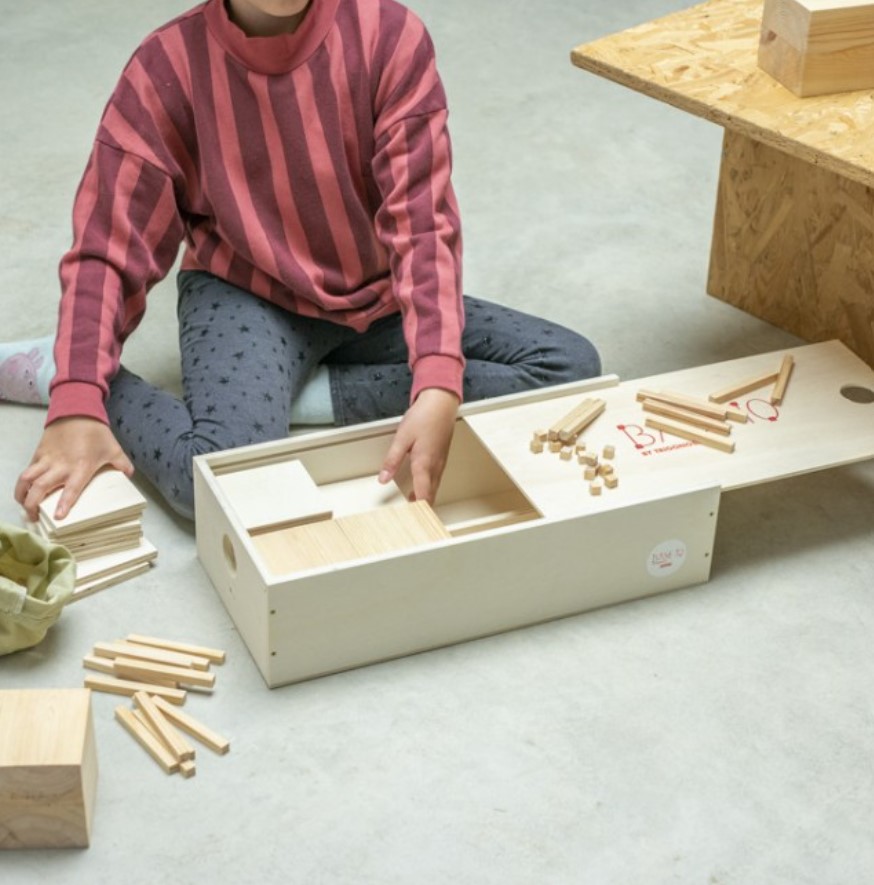 Todas as peças são feitas de madeira maciça (exceto as centenas, que são de contraplacado para evitar que dobrem) e vêm acompanhadas de uma caixa de arrumação em madeira e um saco de algodão para guardar as unidades.