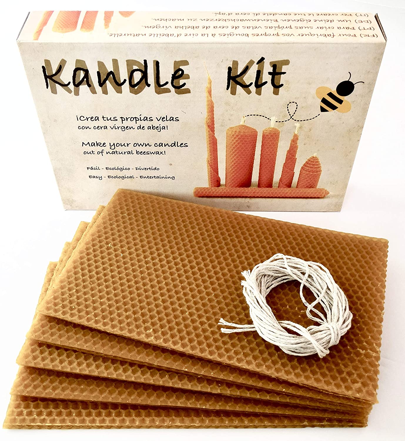 KIT para criar as suas próprias velas, com cera de favo de mel pura e natural; obtida de forma sustentável nas nossas próprias colmeias. Origem Espanha 100%.
