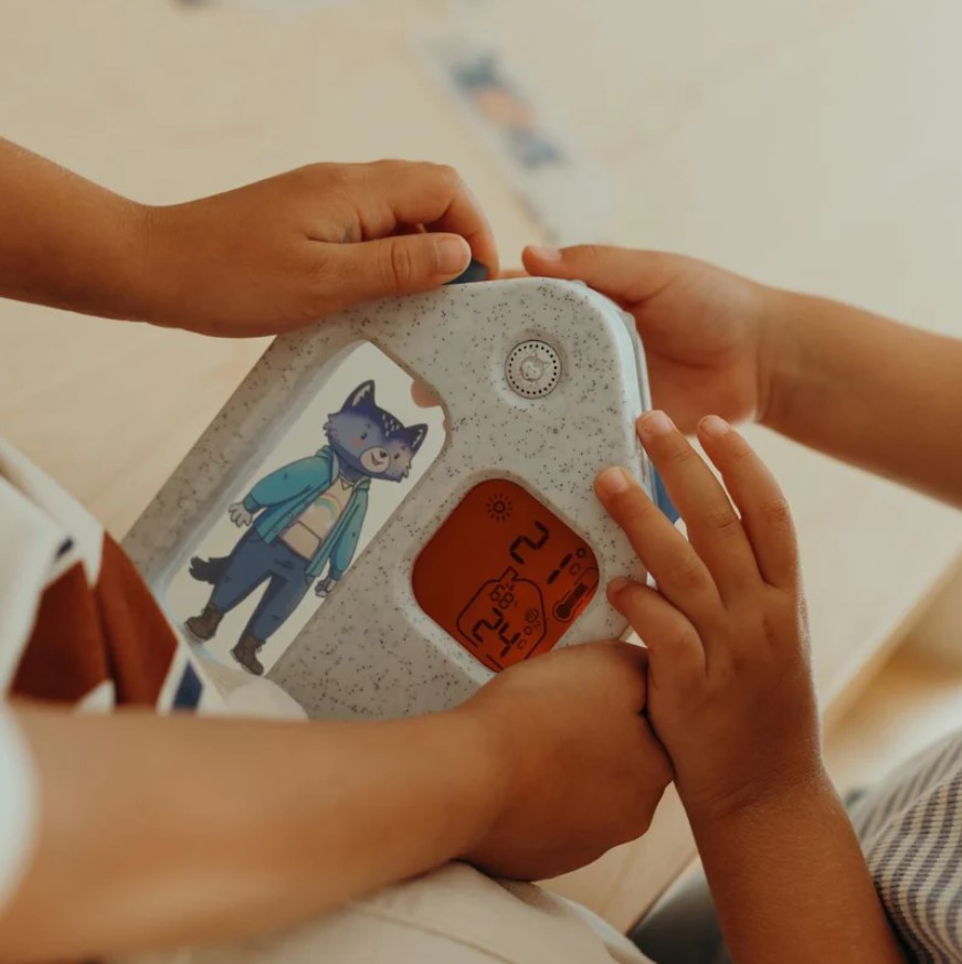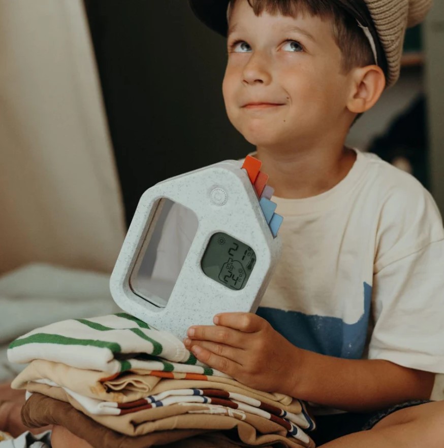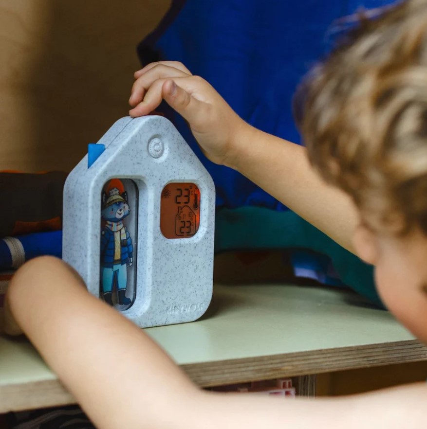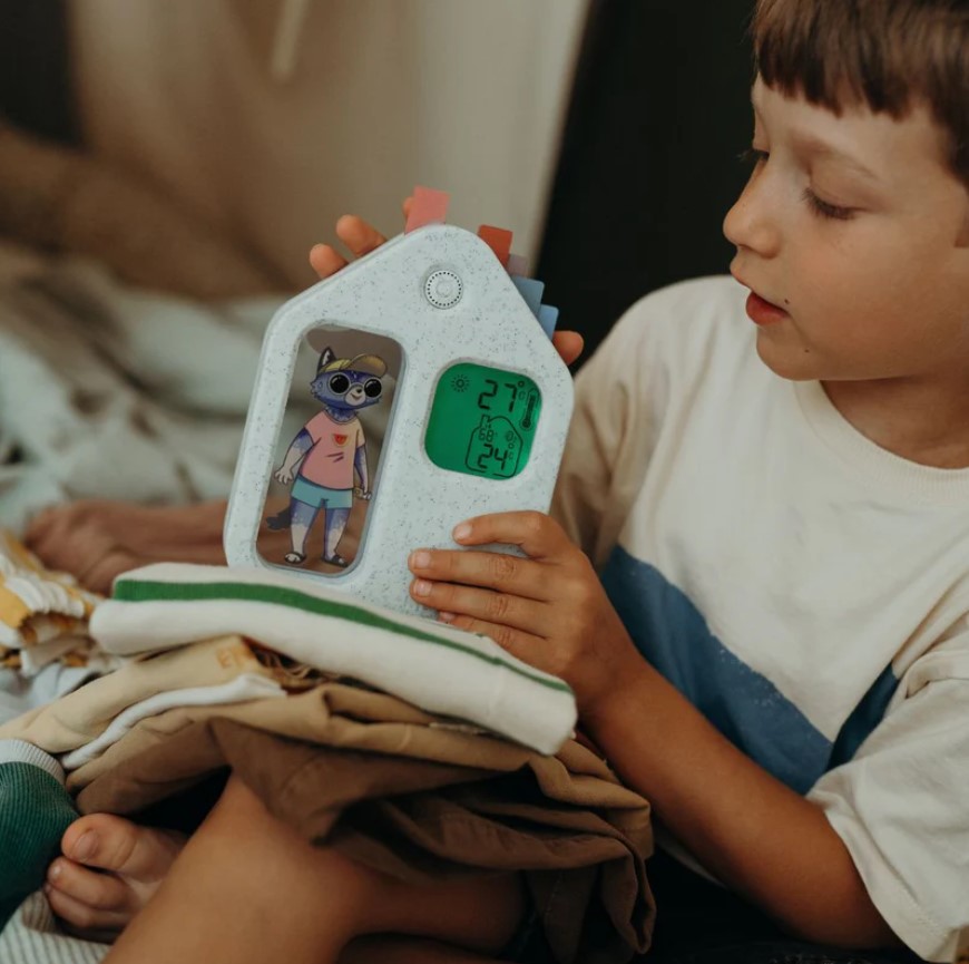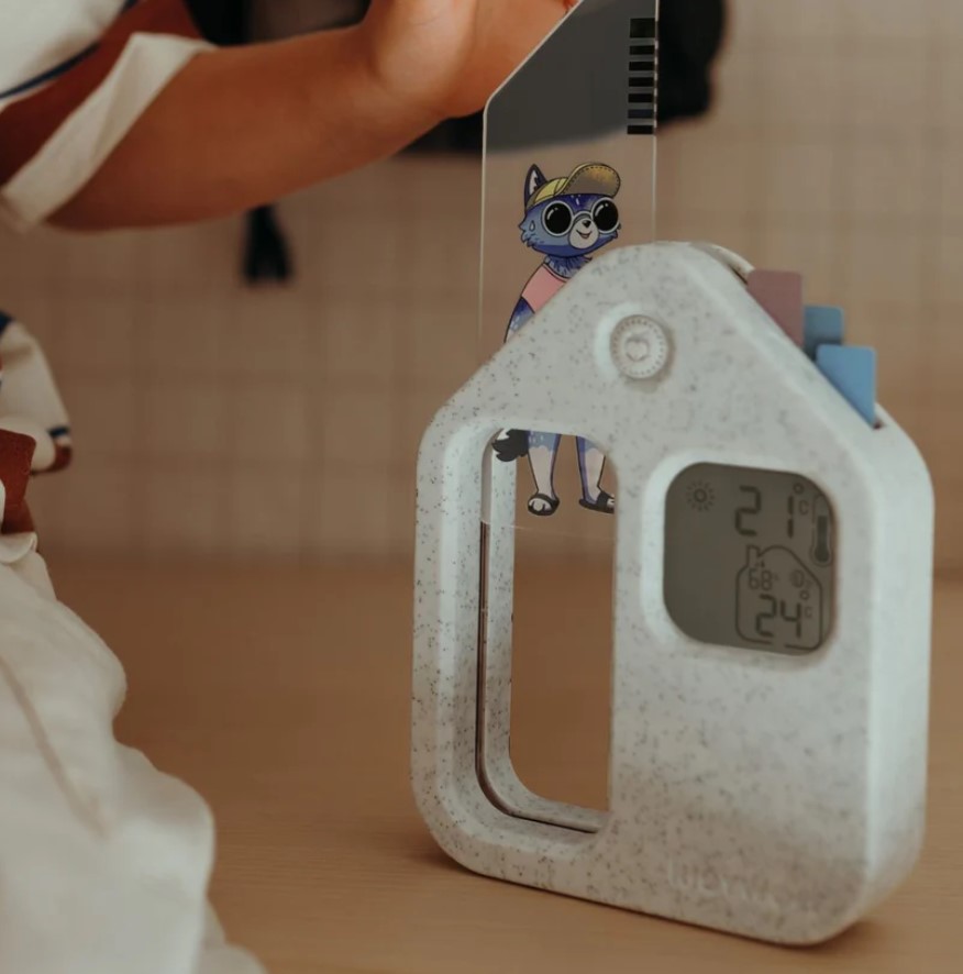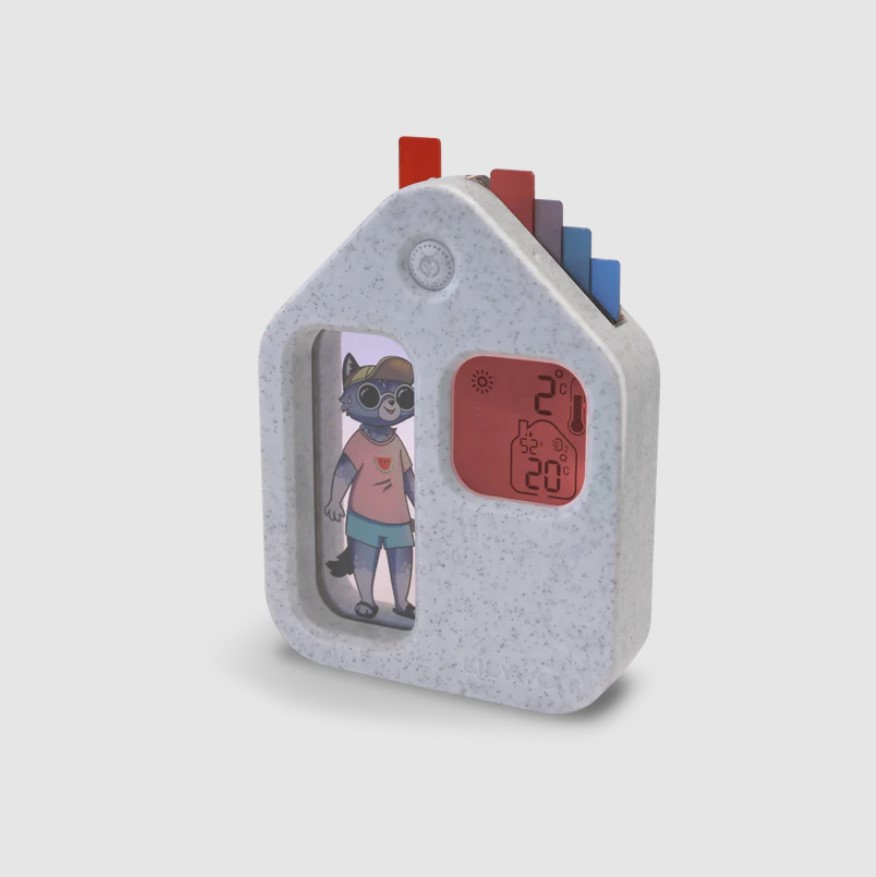 Transforme as manhãs numa aventura divertida com o KidyWeather, a estação meteorológica educativa que ajuda a criança a compreender o estado do tempo enquanto escolhe a roupa para o dia.