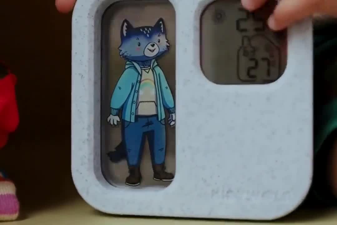 Transforme a rotina matinal numa aventura interativa com o KIDYWEATHER. Primeiro, a criança observa o tempo pela janela; depois, consulta os dados apresentados na estação e escolhe a roupa adequada. De imediato, recebe um feedback visual através de um sistema de luzes: verde para a escolha correta e vermelho para a incorreta. Esta funcionalidade torna a aprendizagem mais divertida e motivadora, ao mesmo tempo que promove a autonomia na preparação diária.