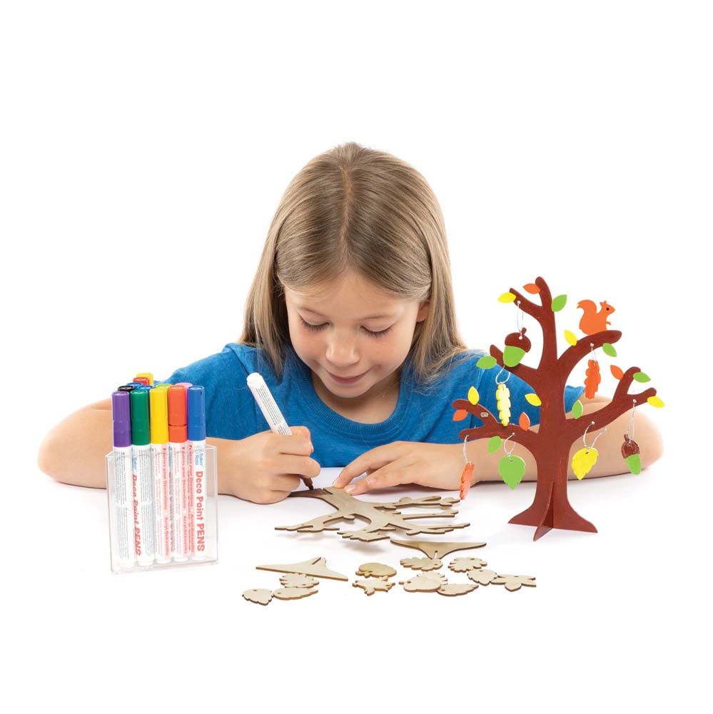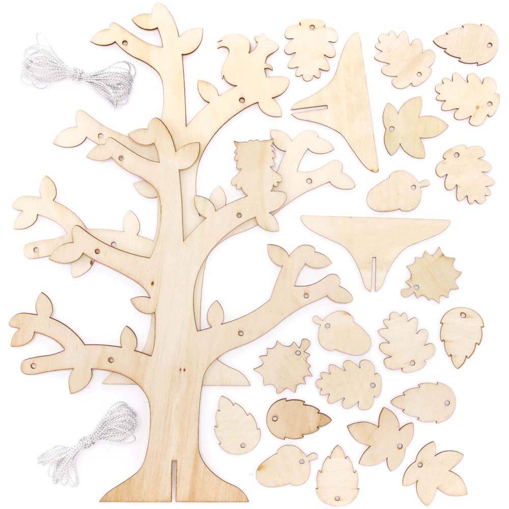 Faça o seu kit de artesanato e seja criativo ... decore as folhas, galhos, pássaros e blocos de madeira de esquilo com glitter, canetas de tinta, acrílicos, adesivos ... seja criativo!
