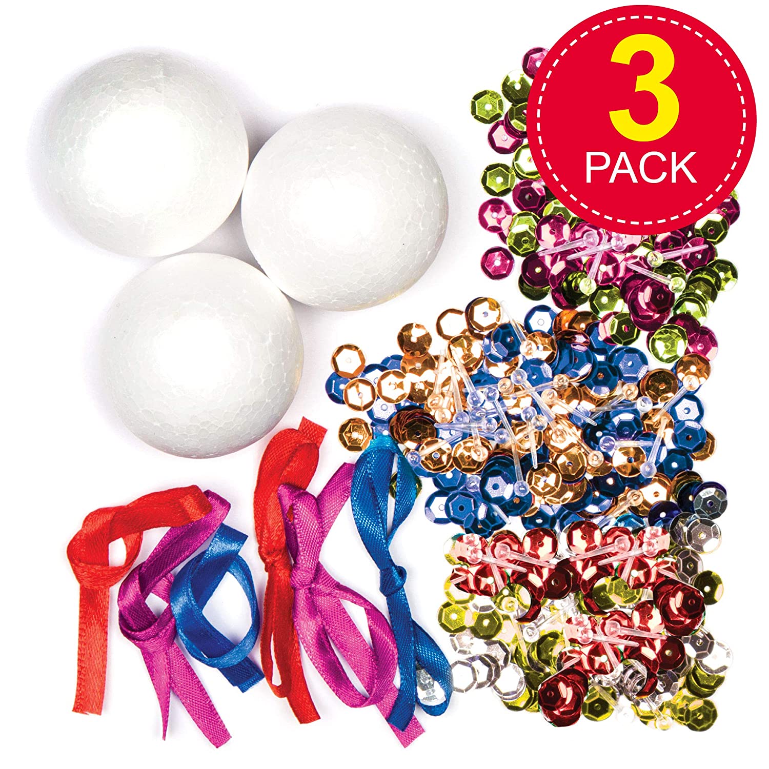 Decorações de Natal: cada kit contém uma bola de isopor de 5 cm, lantejoulas, alfinetes de plástico transparente, fita para pendurar e laços para 3 enfeites de bricolage para pendurar na árvore de Natal