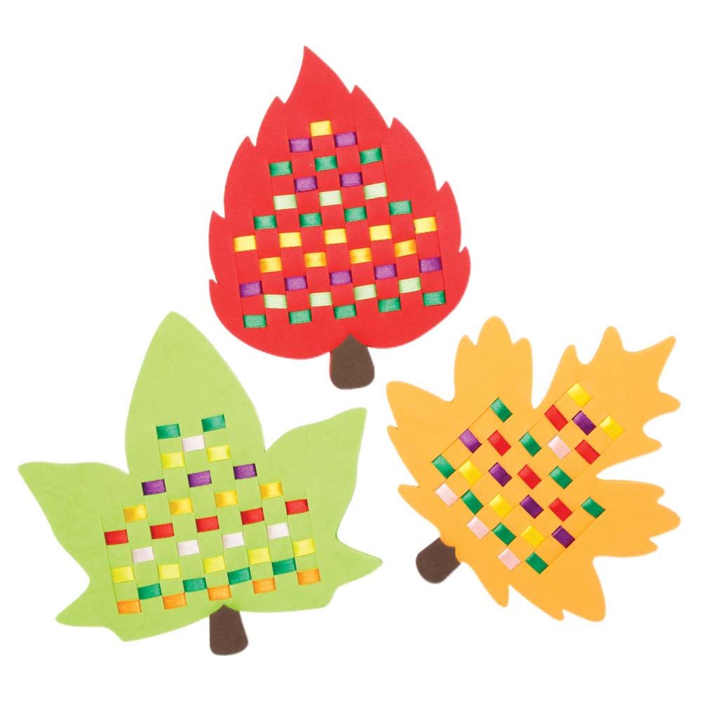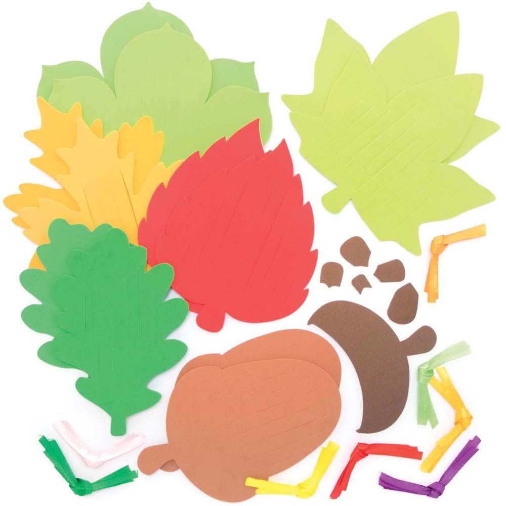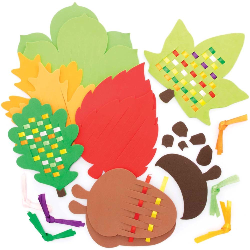 As mãozinhas dos mais pequenos vão adorar tecer as fitas coloridas através dos modelos de espuma em forma de bolota e folha para criar um maravilhoso enfeite.