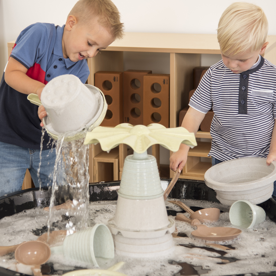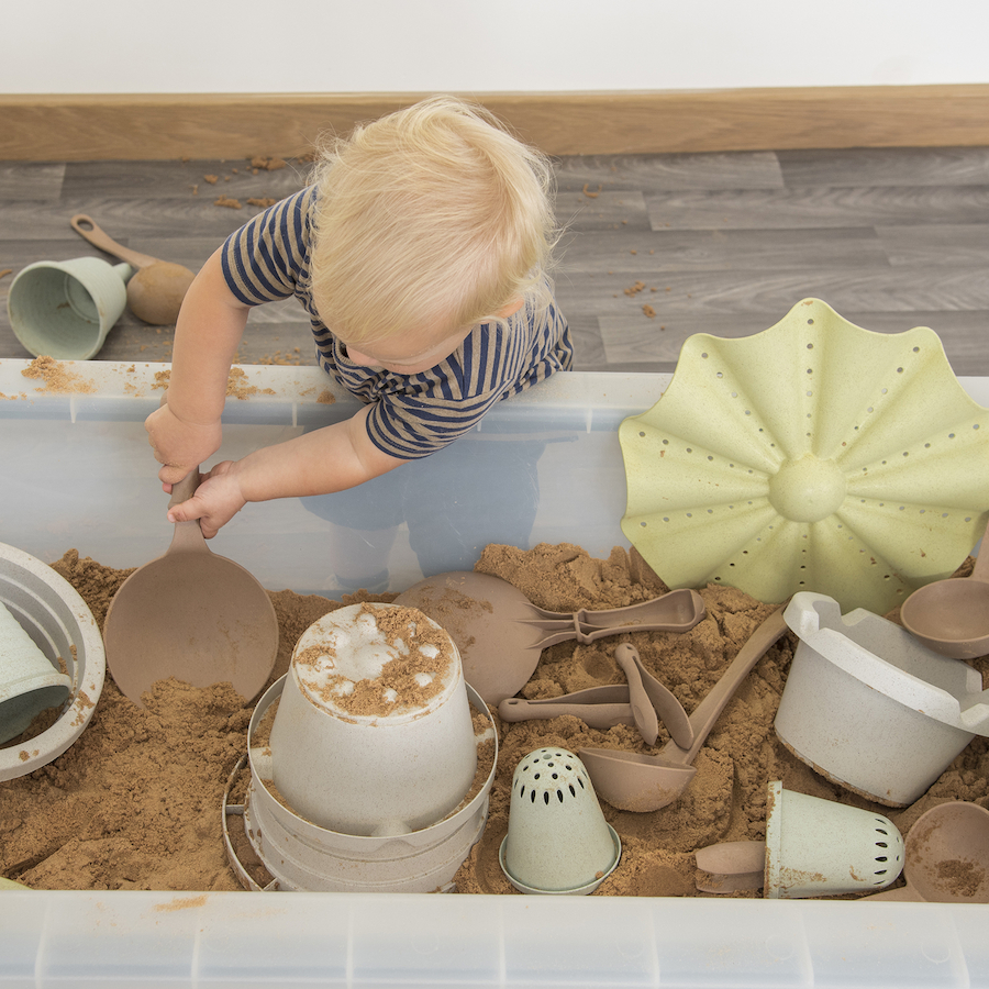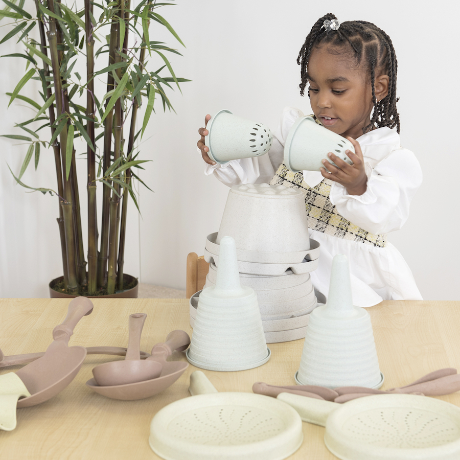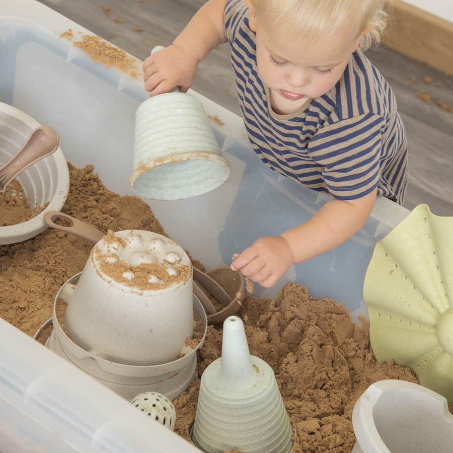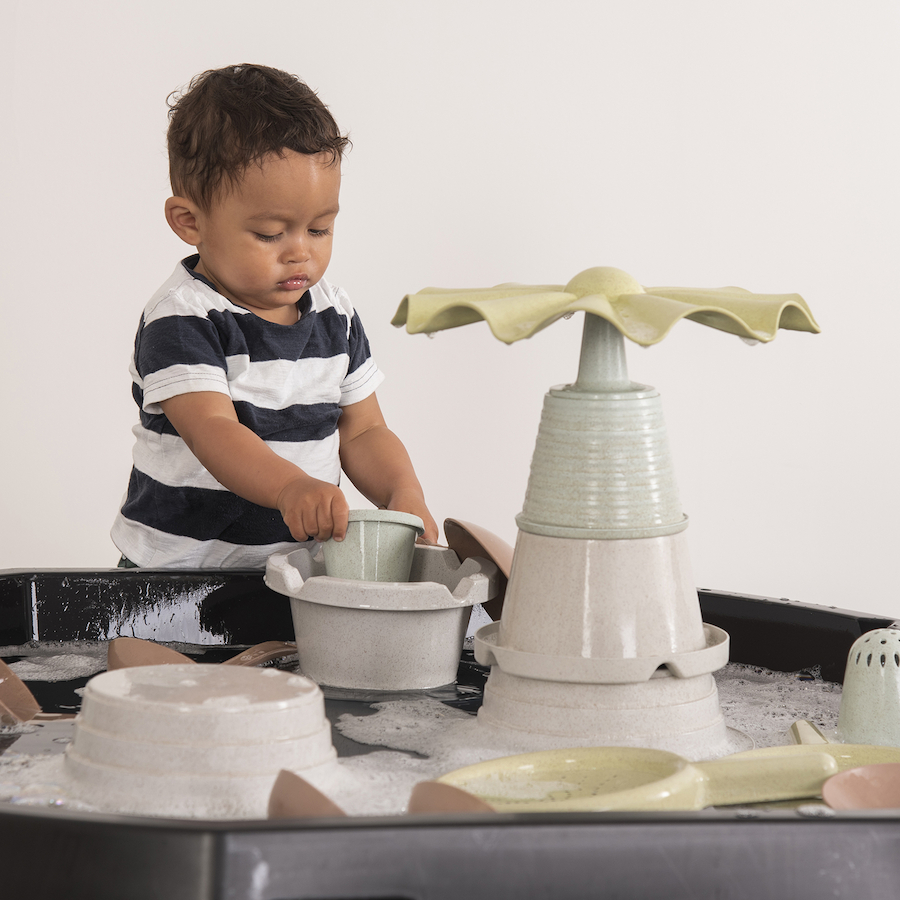 Uma coleção inovadora para brincadeiras de sujidade, centrada no desenvolvimento de competências, oferecendo uma ampla variedade de possibilidades e é feita de materiais biológicos, em tons suaves e naturais.