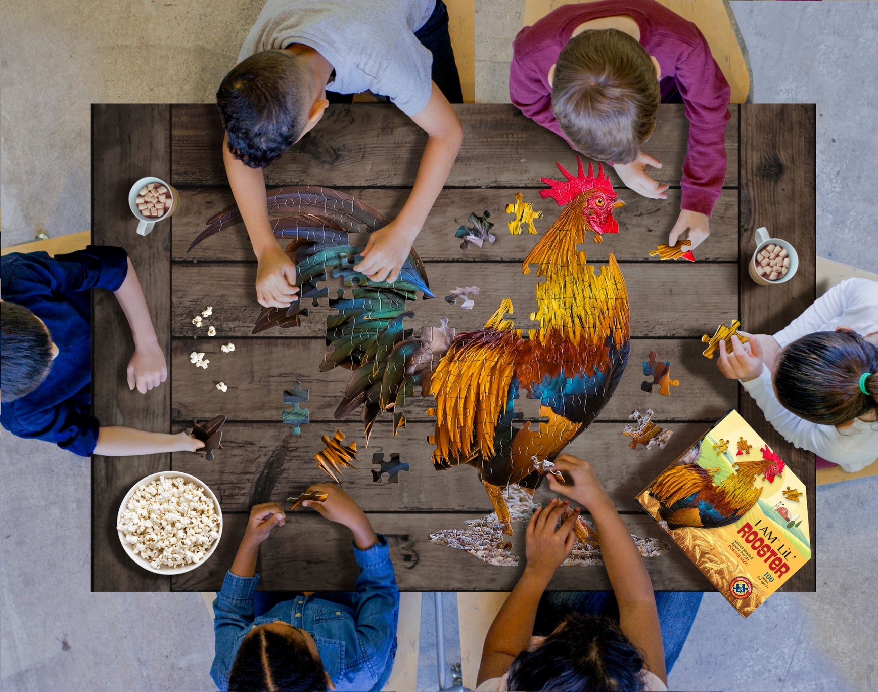 Puzzles de grandes dimensões, cartonados de 100 peças.