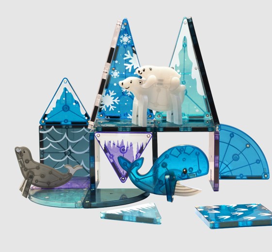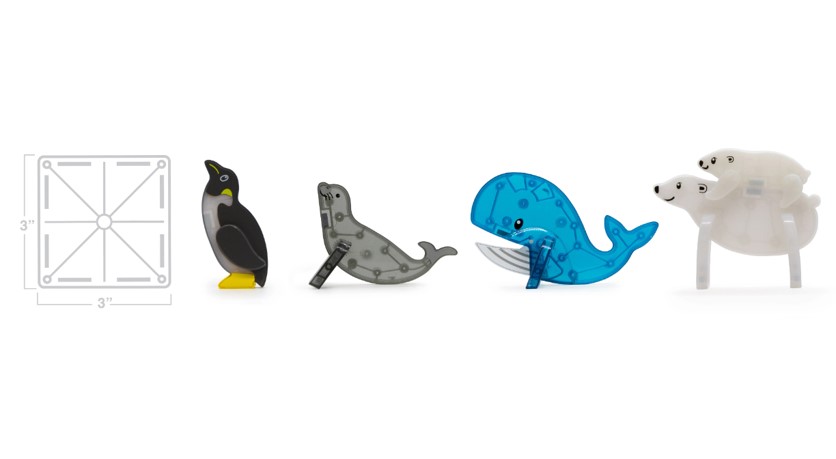 Inclui cinco amigos magnéticos do ártico: Pinguim, Foca, Urso Polar, Ursinho Polar e Baleia.