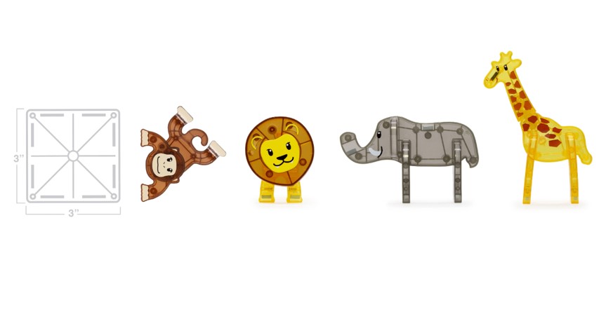 As figuras únicas de animais MAGNA-TILES® incentivam a criatividade, a brincadeira imaginativa e o desenvolvimento de histórias.