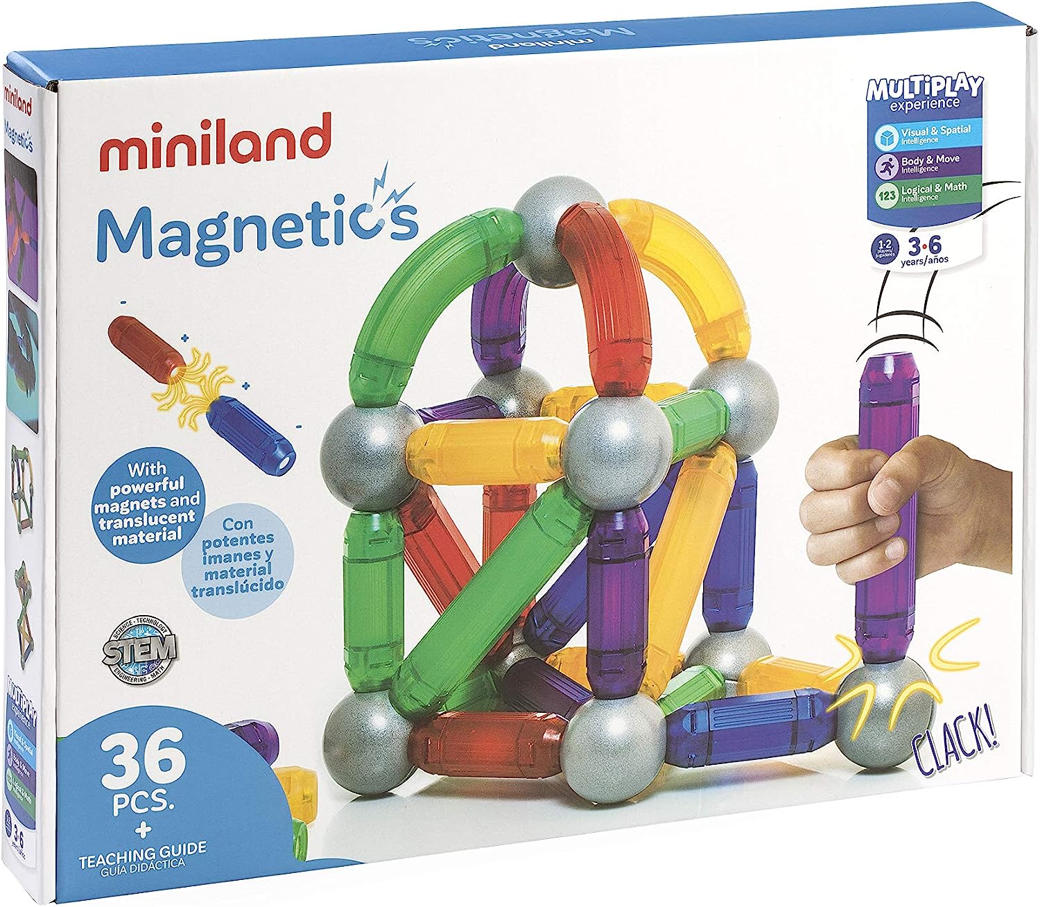 Home Magnéticos Magnetics Magnetics 68,00 € Desconto de %. Comprar Contactar Adicionar à wishlist Contribui para a aprendizagem das cores e da orientação espacial, bem como para a experimentação com o magnetismo. As peças maiores facilitam a pegada e a manipulação, com ímãs internos fortes para fortalecer a conexão entre as peças. Inclui 36 peças e 1 guia de atividades. Marca Miniland Ver vídeo Partilhar