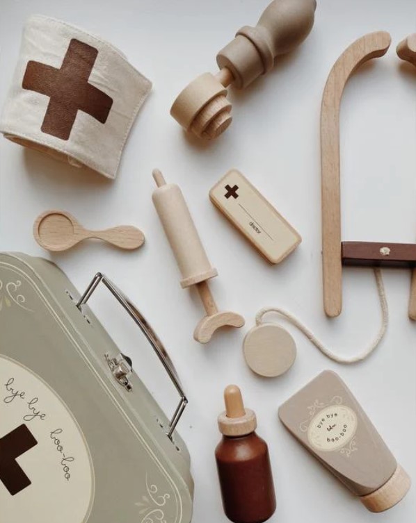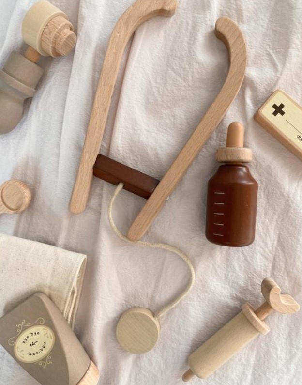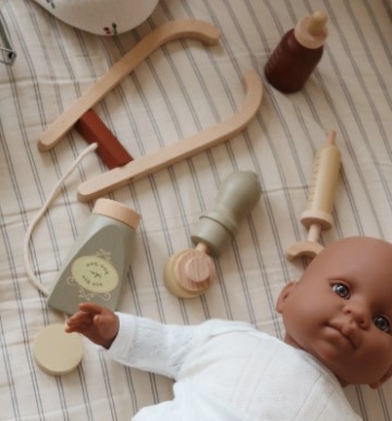 Este set encantador, feito em madeira, vem com uma maleta médica completa que garante horas e horas de diversão!