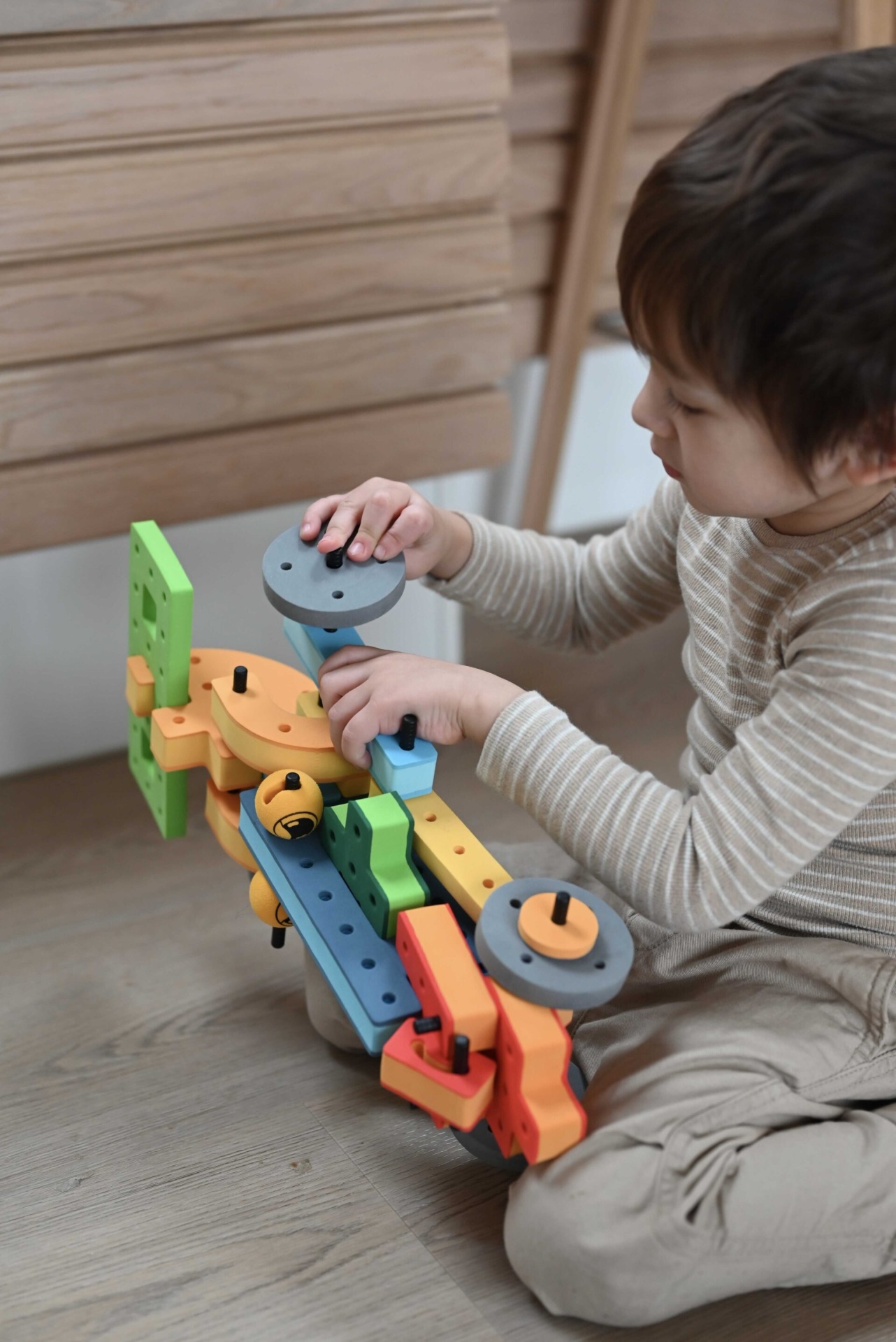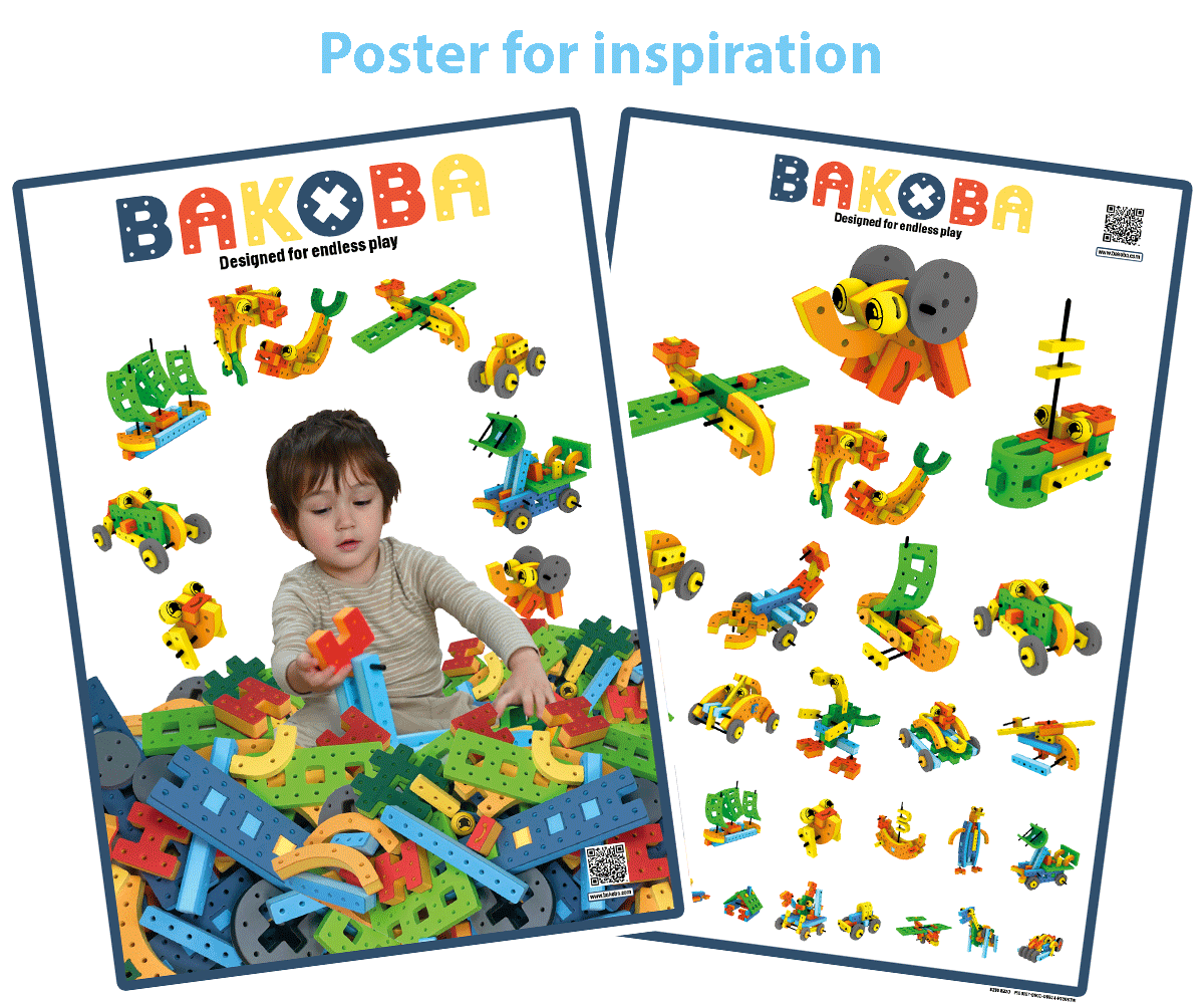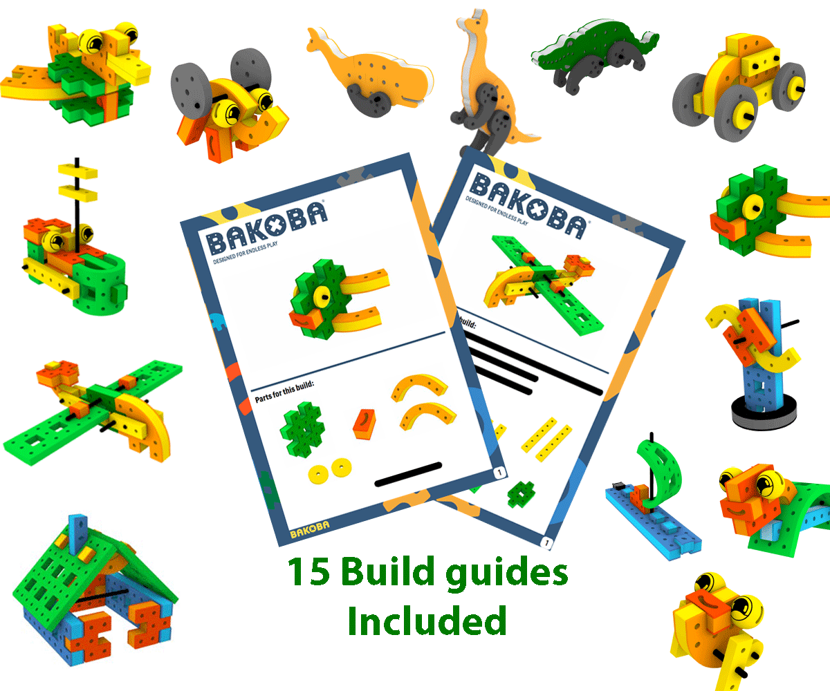 Fabricado em espuma EVA macia e segura, o BAKOBA convida as crianças a explorar a sua criatividade e a construir tudo o que imaginarem — desde carros e aviões até animais e criações fantásticas.