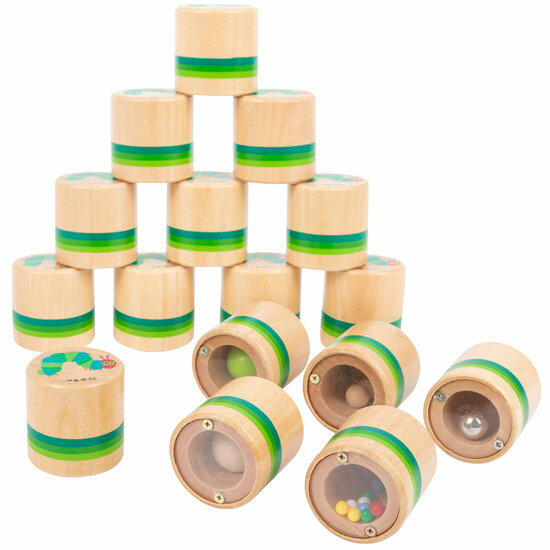 Ao abanar e escutar com atenção, as crianças determinam quais as duas caixas de madeira no jogo sensorial que devem ser emparelhadas.
