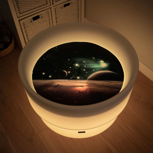 Na gama de Luzes Sensoriais Mood, existem outras formas disponíveis, incluindo: Mesa de Descoberta, Cubo, Pedra, Pirâmide, Ovo, Bola e uma Mesa baixa.