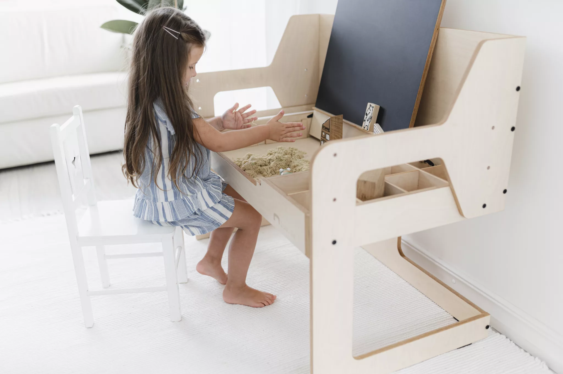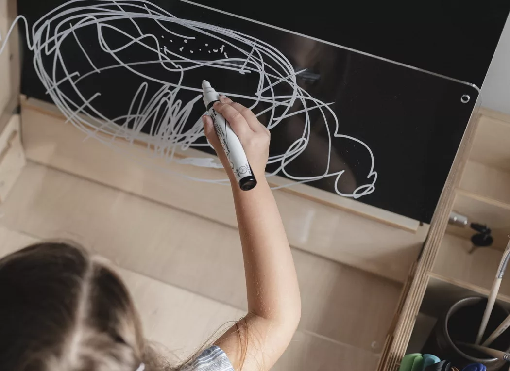 A mesa dará à criança oportunidades independentes para trabalhar, ajudando a manter uma certa ordem e limpeza no espaço de vida: