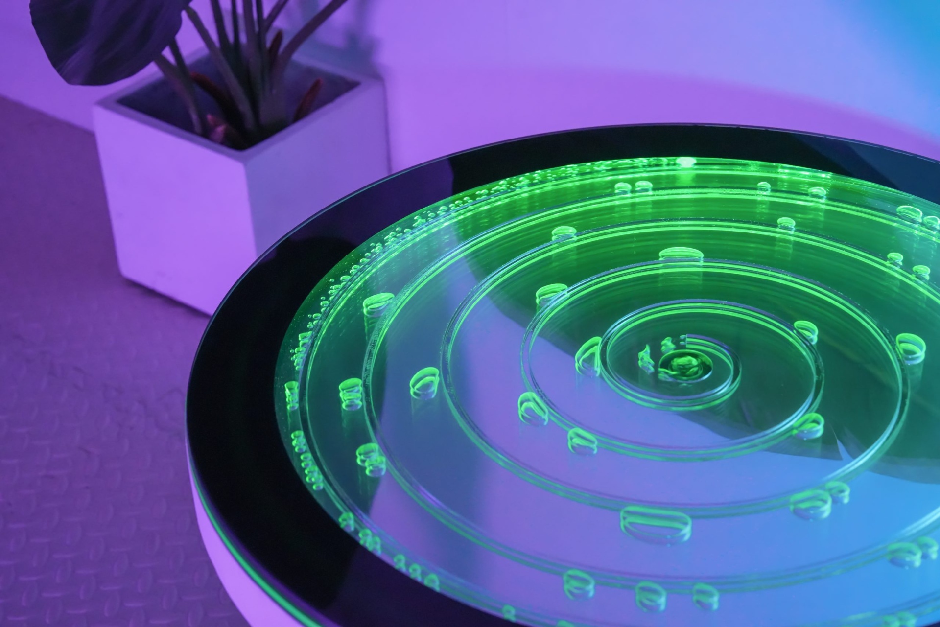 Observa como as bolhas luminosas se movem lentamente através de um labirinto, criando um efeito hipnótico e relaxante que capta a atenção e promove a calma.