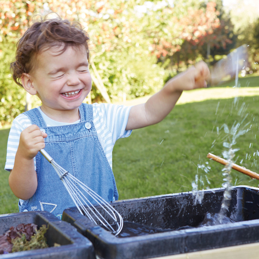 Incorporar esta mesa no ambiente de aprendizagem ao ar livre enriquece qualquer currículo e desperta brincadeiras imaginativas.