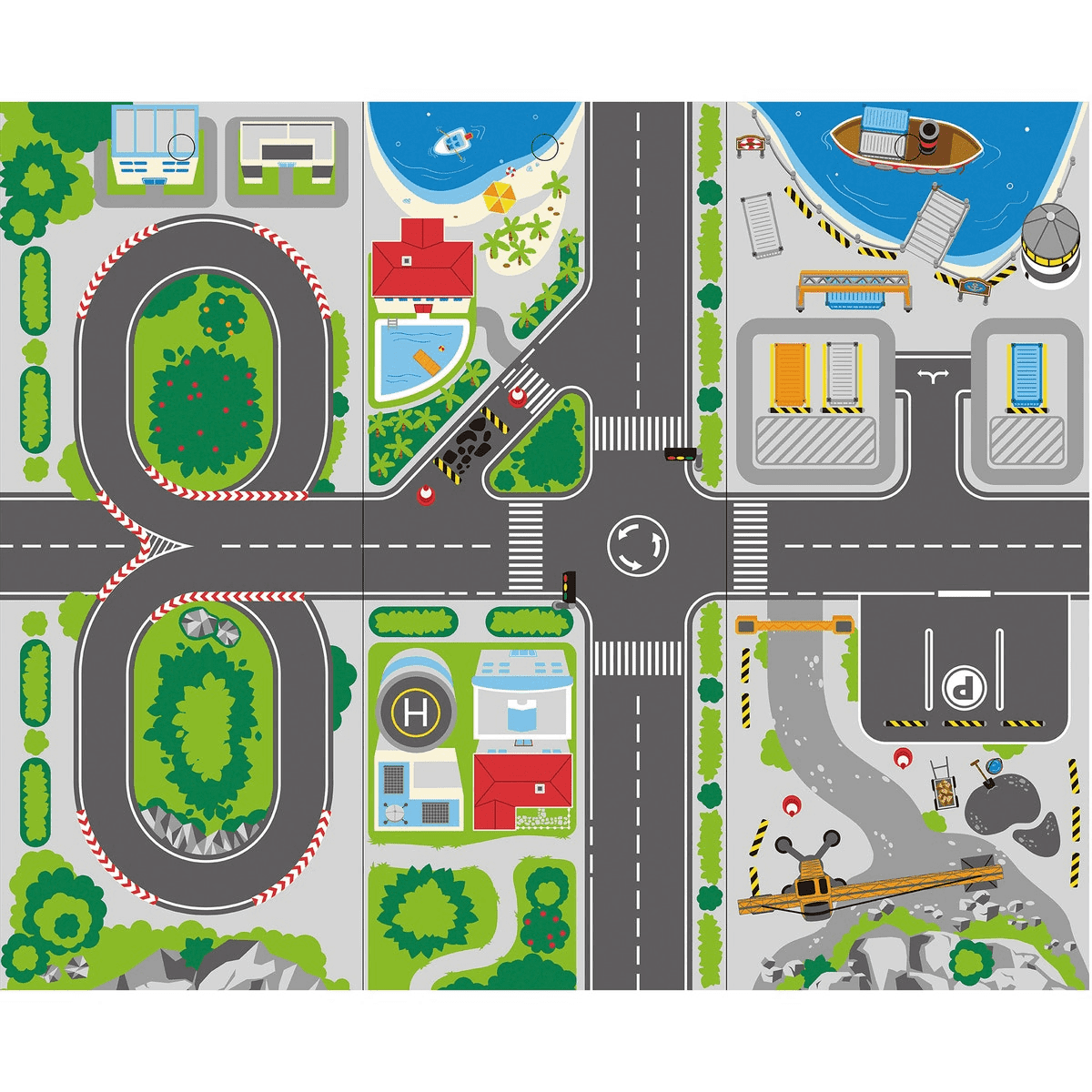 Esta divertida e multifuncional mesa de atividades, oferece às crianças duas modalidades de jogos diferentes: por um lado, uma selva e por outro, uma cidade.