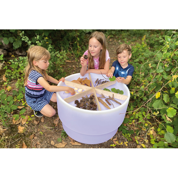 O design circular é perfeito para um fácil acesso à mesa para brincadeira individual ou colaborativa. O design resistente mas leve torna-o prático para alternar entre a brincadeira dentro e fora de casa e é rápido e fácil de limpar.