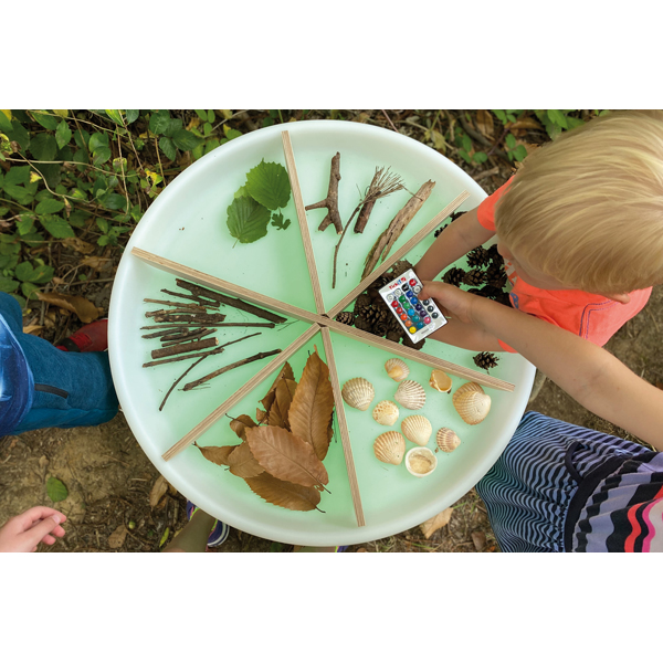 Uma cativante experiência sensorial - a nossa Mesa de Descoberta Sensorial TickiT® com o seu design único e envolvente traz uma sensação mágica à exploração e descoberta sensorial. Usando o controlo remoto, pode iluminar a mesa com um suave brilho de cores em mudança. A mesa de descoberta tem uma margem elevada na borda exterior, o que significa que pode ser preenchida com água, gelatina, espuma, areia ou objetos translúcidos para uma forma divertida de explorar formas, luz e cor através de uma brincadeira desorganizada.