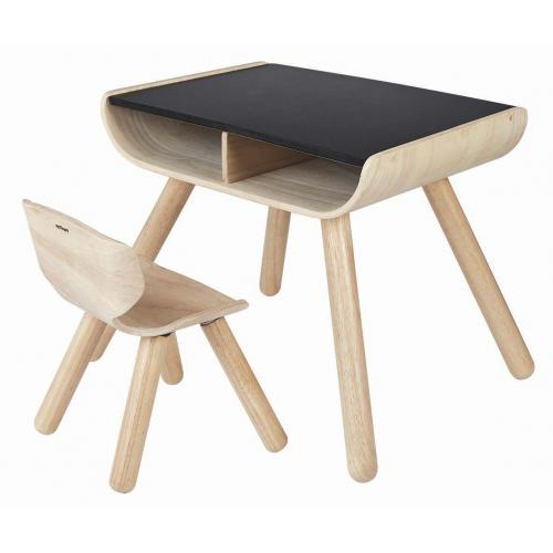 Possui 2 compartimentos para armazenamento, pernas robustas e firmes, e uma superfície de mesa na qual as crianças podem desenhar com giz.