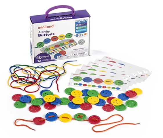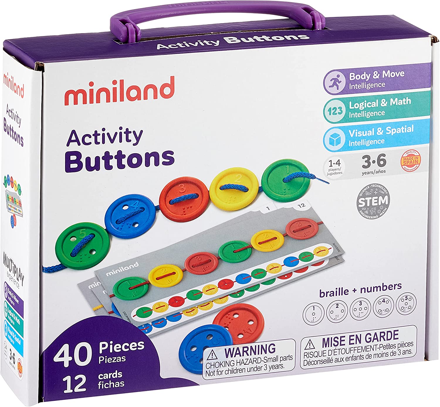 Home Motricidade fina Activity Button Activity Button 13,50 € Desconto de %. Comprar Contactar Adicionar à wishlist Botões grandes de 1 a 5 furos em cores vivas. Ideal para sequenciar e classificar, além de desenvolver habilidades matemáticas e motoras. Cada botão possui um número em relevo e seu símbolo equivalente em Braille. O conjunto inclui 40 botões, 12 cartões de jogo e 5 cordões. Marca Miniland Características Partilhar