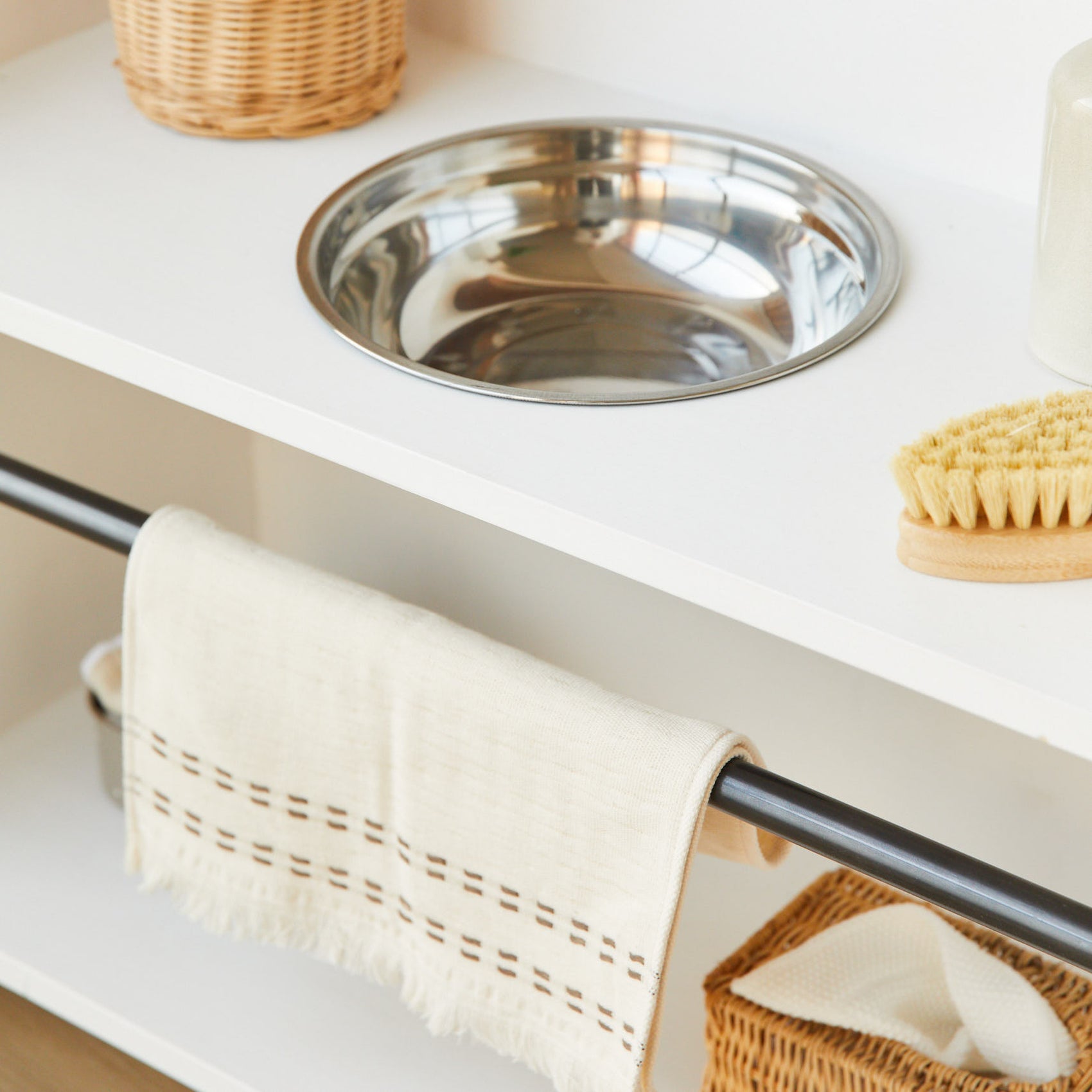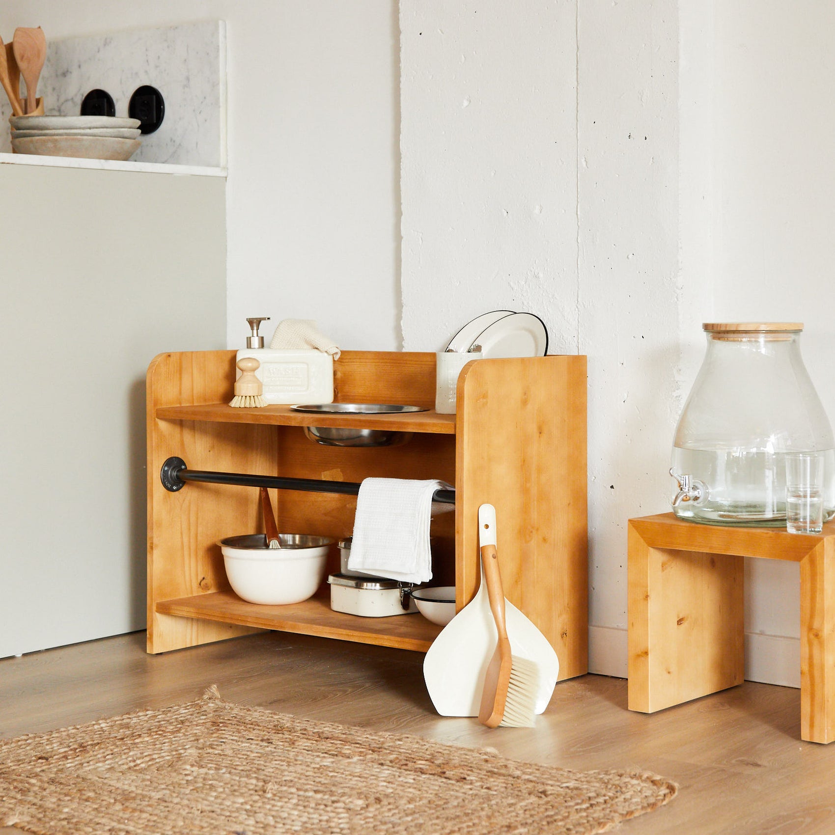 O autocuidado é a base para a autoestima e a participação social. María Montessori observou que, ao proporcionar às crianças os meios para cuidar de sua higiene pessoal de forma autónoma, elas têm mais autoconfiança e, seguindo essa filosofia, projetamos o nosso lavatório Ellery, com materiais naturais.