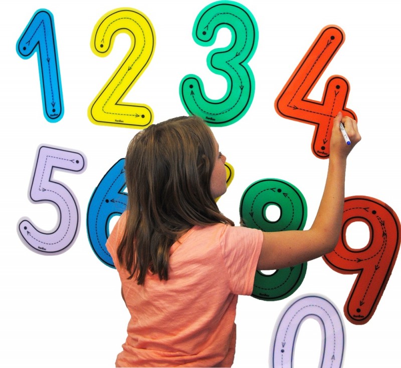 Números grandes e coloridos translúcidos para estimular uma correta formação numérica, fomentando a coordenação óculo-manual na dimensão vertical ou horizontal.