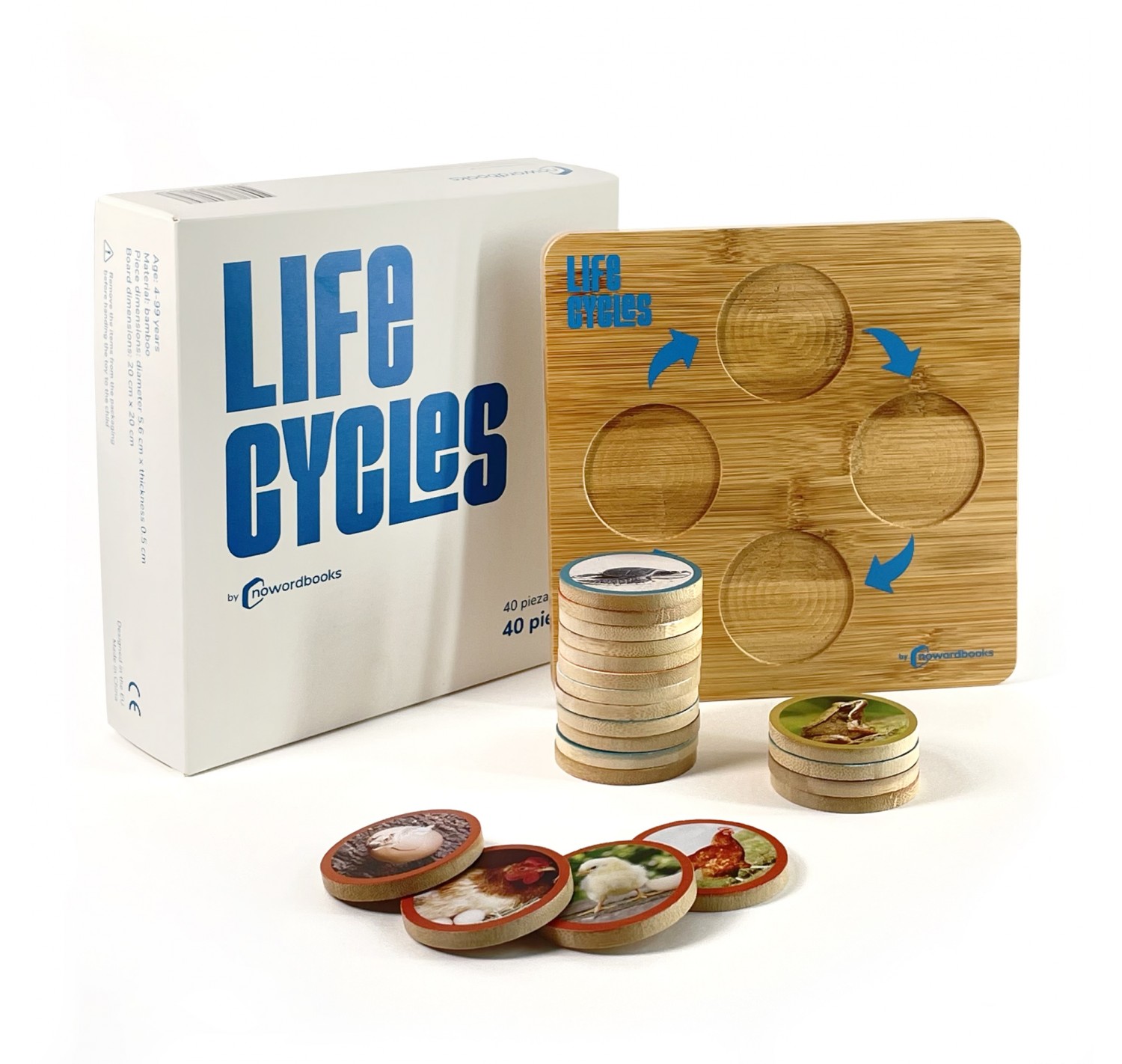Home Ciclos de Vida Os Ciclos da Vida Os Ciclos da Vida 28,90 € Desconto de %. O produto encontra-se sem stock. Adicionar à wishlist Conjunto de 40 peças e tabuleiro de bambu, que mostra o ciclo de vida de 10 seres vivos, tanto animais como vegetais. Cada ciclo é representado por 4 peças que possuem uma coroa da mesma cor que as identifica. O jogo é acompanhado por um folheto que detalha cada ciclo, servindo como referência tanto para crianças como para adultos. Especialmente recomendado para ser utilizado como material educativo na metodologia Montessori. Certificado de segurança EN71.1.2.3. Material: Bambu Tabuleiro: Comprimento e Largura: 20 cm.Espessura: 1,5 cm. Peças: Diâmetro: 5,6 cm.Espessura: 0,5 cm. Marca NowordBooks Partilhar
