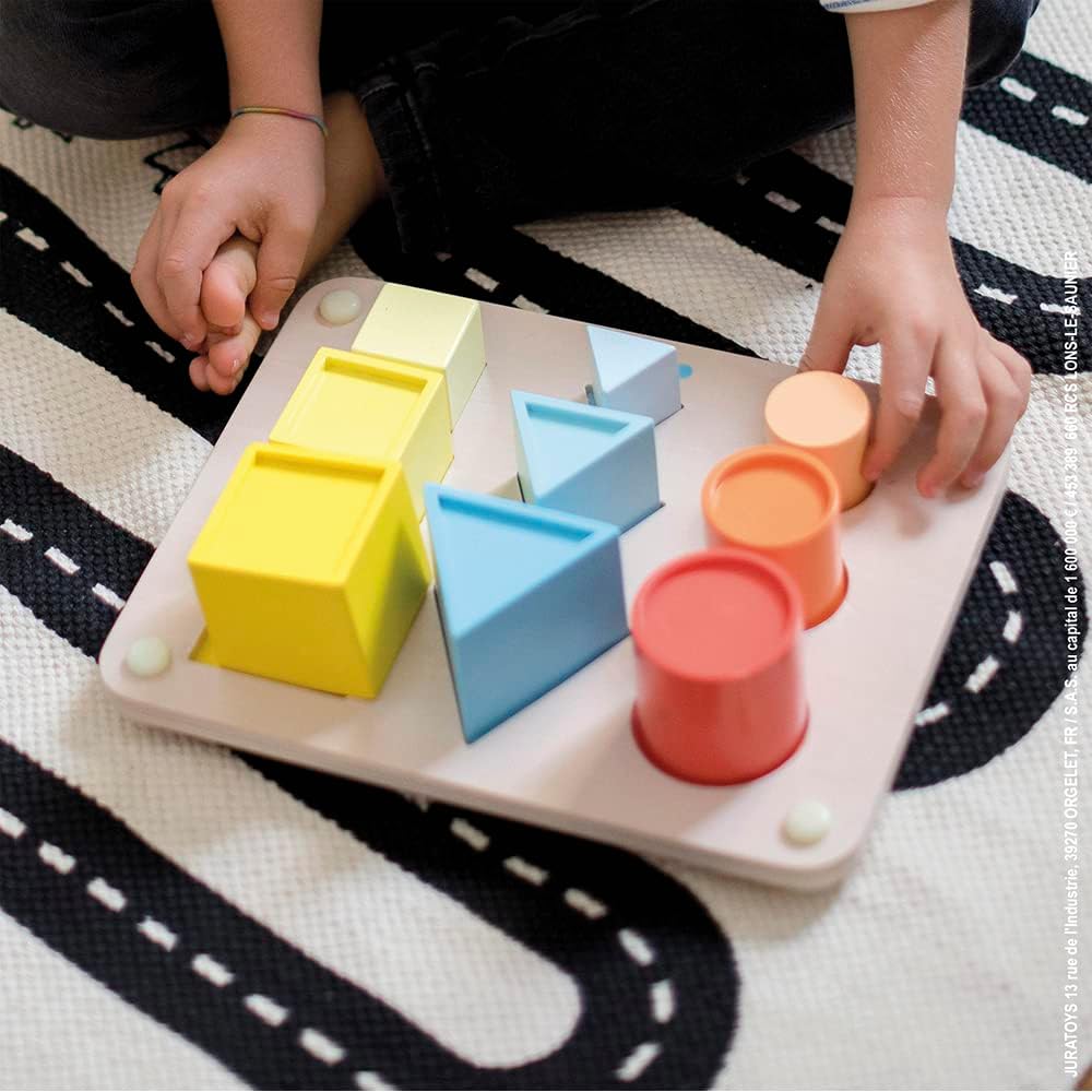 Como característica inteligente, este tabuleiro está equipado com pés de silicone antiderrapantes para maior estabilidade. Este produto desenvolve habilidades motoras finas, consciência de formas e cores, e noção espacial.