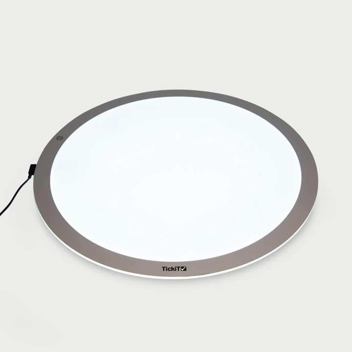 Desperte a imaginação com os nossos painéis de luz LED redondos da TickiT®. Uma forma fascinante de explorar a luz, as cores e as formas. O painel possui um design elegante com bordas arredondadas seguras, um conector magnético anti tropeções e três configurações de intensidade luminosa. É robusto, portátil e fácil de limpar, com um mecanismo de bloqueio simples para evitar desligamentos acidentais. Todos os painéis de luz da TickiT® possuem classificação energética A+.