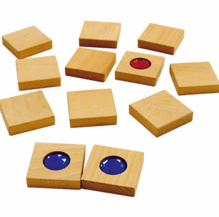 12 blocos de madeira de faia com diamantes de plástico coloridos (6 cores)