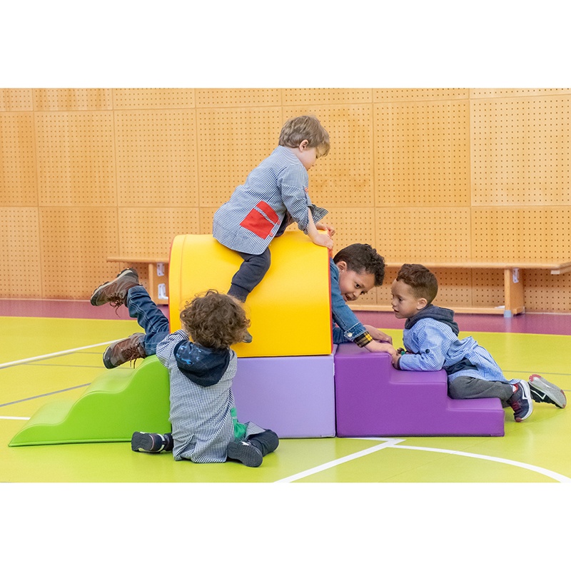 Percurso com túnel, composto por 4 peças em espuma de poliuretano de 23kg/m3, revestido com tela PVC ignífuga M2, impermeável, lavável com água e sabão (detergentes sem abrasivos).