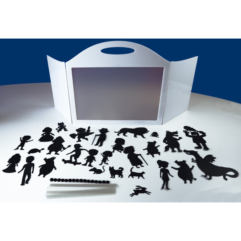 Conjunto de Sombras que Inclui os Personagens Mais Importantes para Crianças e Adultos Representarem as Moralidades dos Contos Tradicionais, Ampliando Assim a Sua Expressão Verbal e Capacidades Narrativas. Também Inclui Membros da Família para Estimular a Criatividade ou Representar Histórias Familiares.