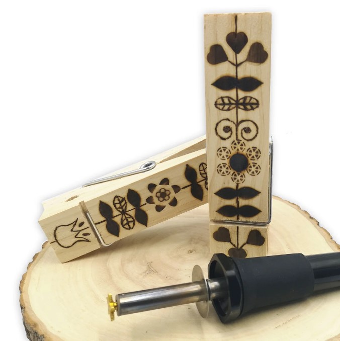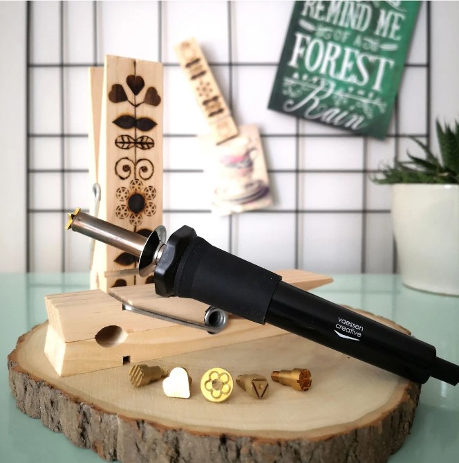 Com esta ferramenta de pirógrafo da Vaessen Creative, pode gravar nomes, escrever belas citações e criar desenhos rústicos em todo o tipo de objetos, como tábuas de corte de madeira, bandejas, colheres de servir, molduras e até caixas para pássaros!