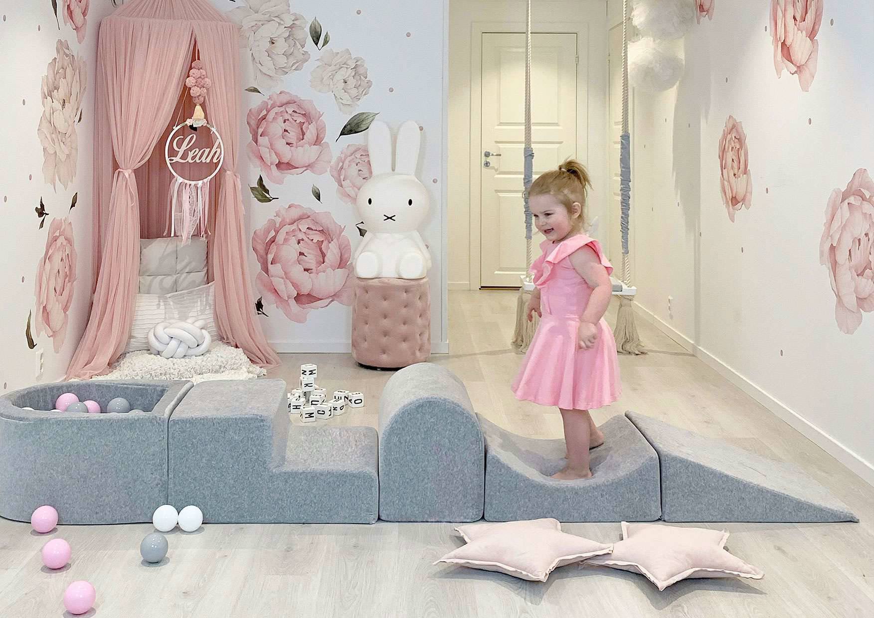 O conjunto de jogos de espuma é um equipamento perfeito para o berçário, parque infantil, mas, antes de mais, devido à capa extremamente agradável ao toque - também para quartos de crianças. O design simples e minimalista deste produto faz com que ele se encaixe perfeitamente no espaço doméstico.