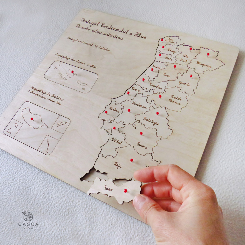 Tabuleiro para encaixe das peças dos distritos e ilhas.