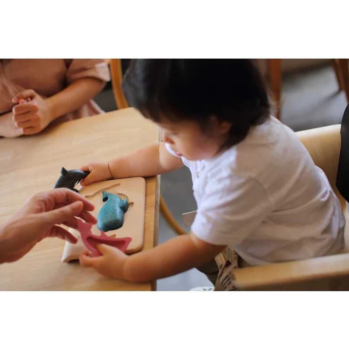 Puzzle de 4 peças - 1 base e uma peça de baleia, golfinho e orca
