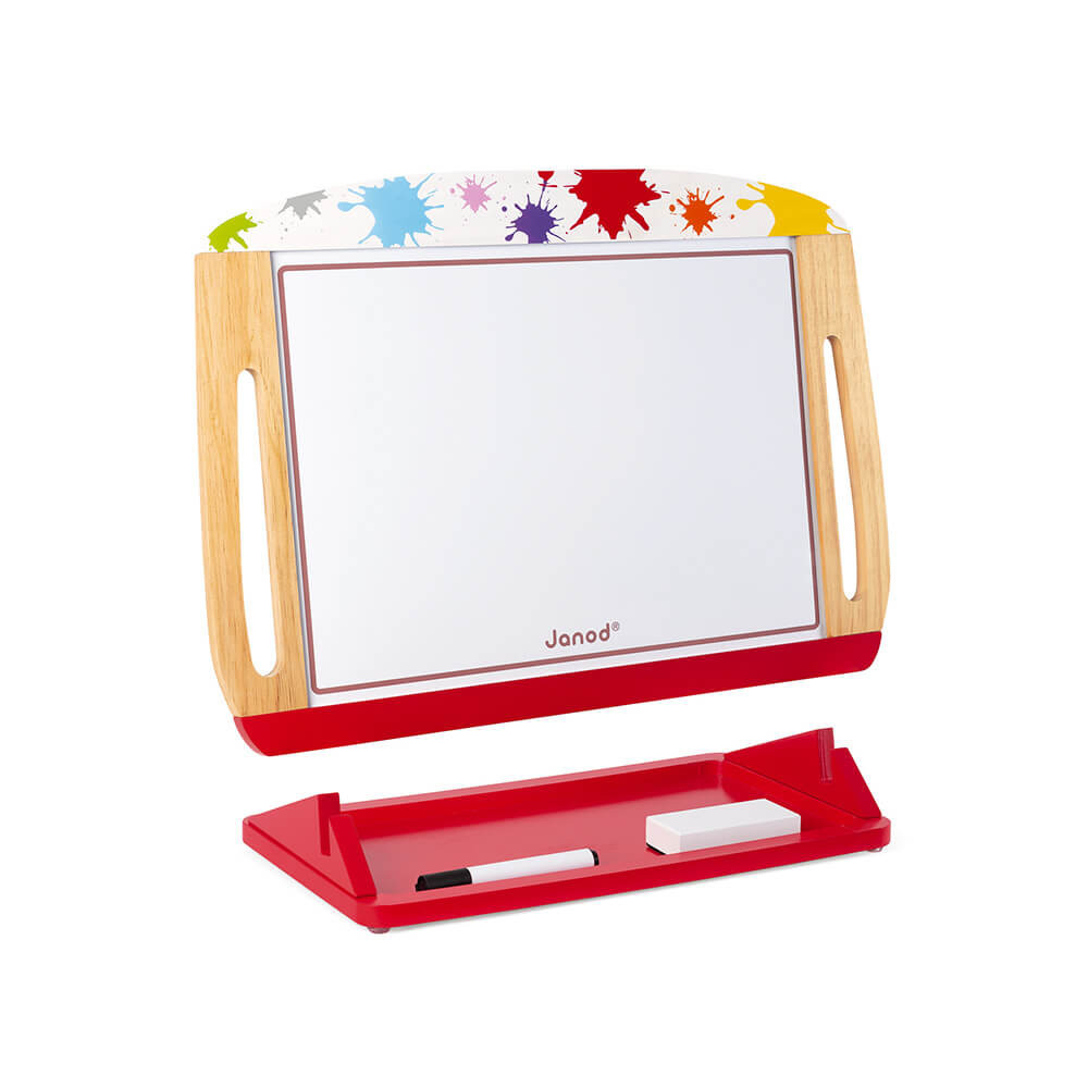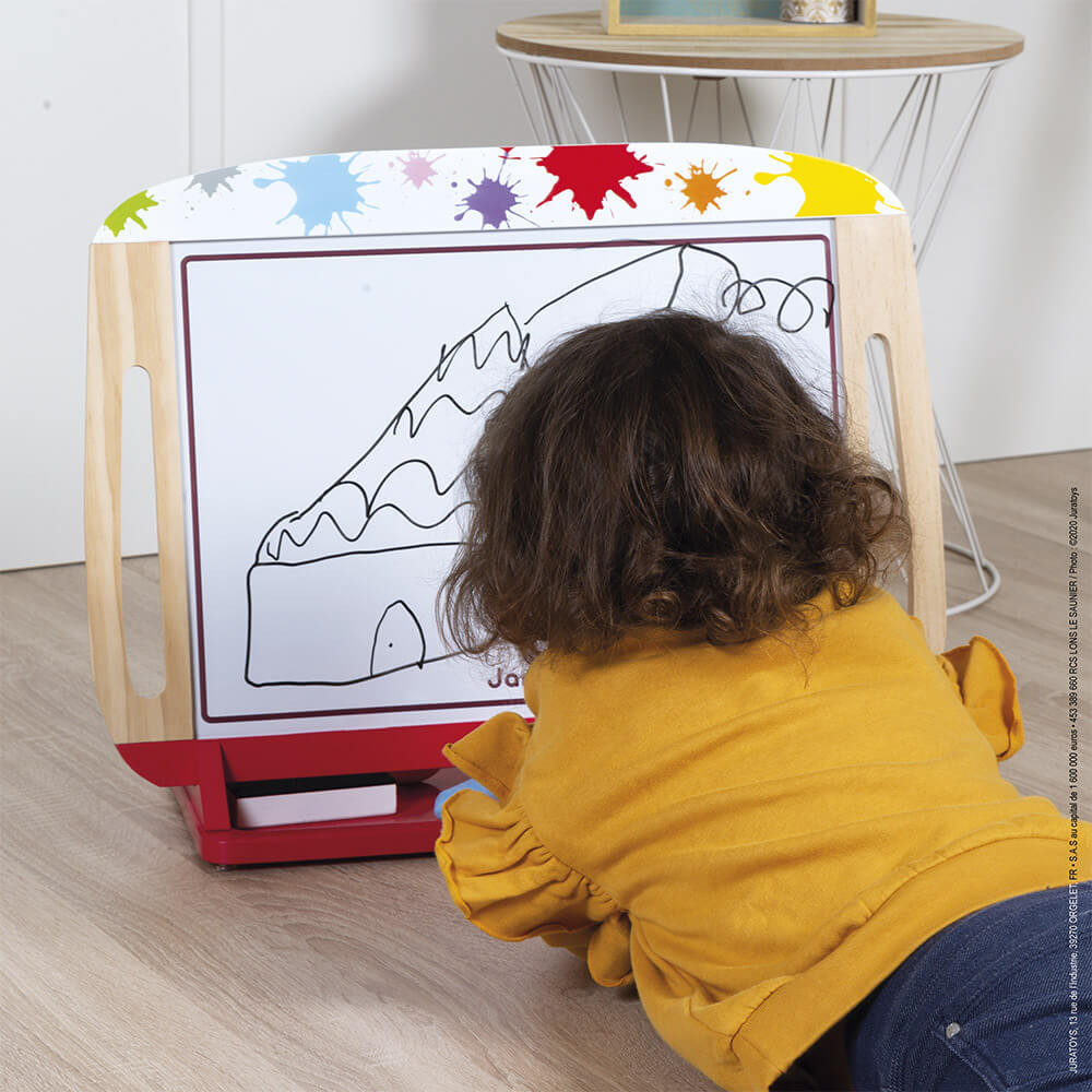 Perfeito para crianças a partir dos 3 anos, este quadro dupla face em madeira permite-lhe desenhar ou escrever em qualquer divisão da casa ou enquanto está em movimento.