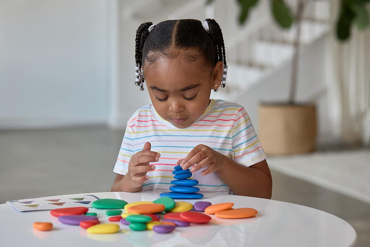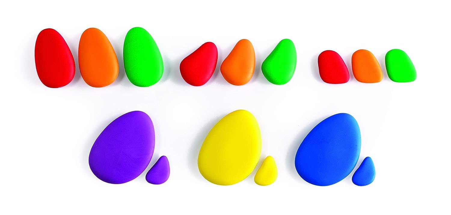 As Rainbow Pebbles® ajudam as crianças a aprenderem sobre cores, reconhecimento de formas, contagem, classificação, ordenação, criação de padrões, sequências, construção e empilhamento, promovendo a aprendizagem através da brincadeira.