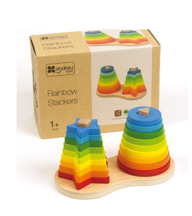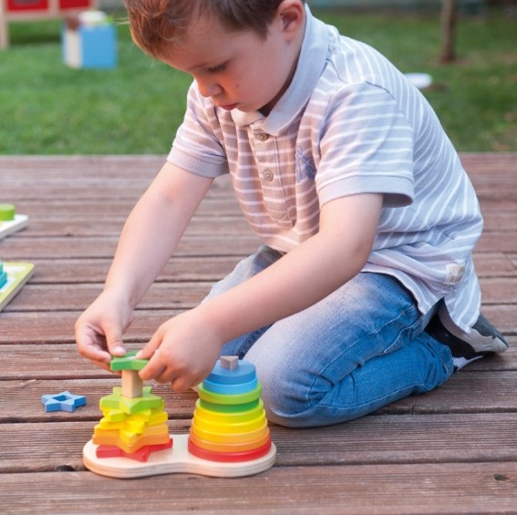 Jogo ideal de empilhar e organizar, excelente para o desenvolvimento da motricidade fina, destreza, coordenação óculo-manual e capacidades de manipulação.