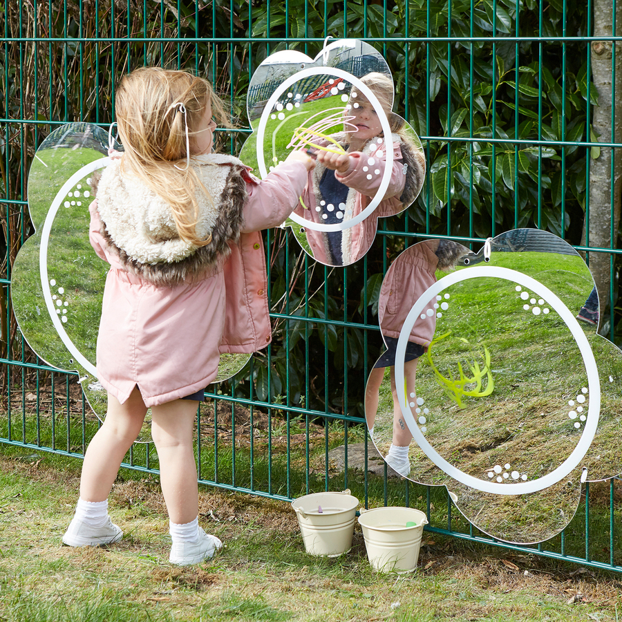 Projetados para estimular a criatividade e a comunicação, os espelhos acrílicos em forma de margarida são um excelente recurso para expressar ideias e sentimentos através da marcação.