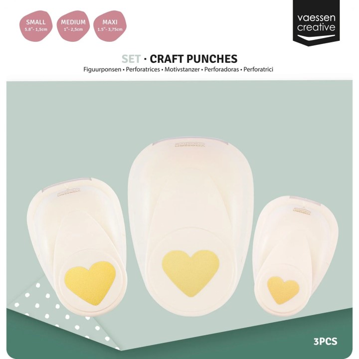 Utilize este conjunto de furadores da Vaessen Creative para recortar corações (13 x 16 mm, 20 x 25 mm e 30 x 36 mm) a partir de papel, cartolina, fotografias, cortiça, espuma eva fina e muito mais. Os furadores de papel são os parceiros perfeitos para decorar cartões, páginas de scrapbook, planners, etiquetas e convites.