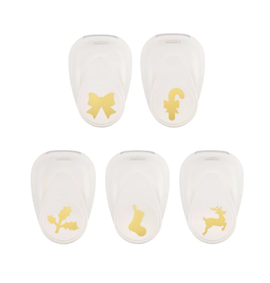 Os cinco designs diferentes do conjunto têm aproximadamente o mesmo tamanho. Os perfuradores de artesanato são adequados para papéis com peso mínimo de 120 até 220 gramas. Também pode utilizá-los para perfurar folhas finas de cortiça, papel para scrapbook, papel para decoupage e espuma fina.